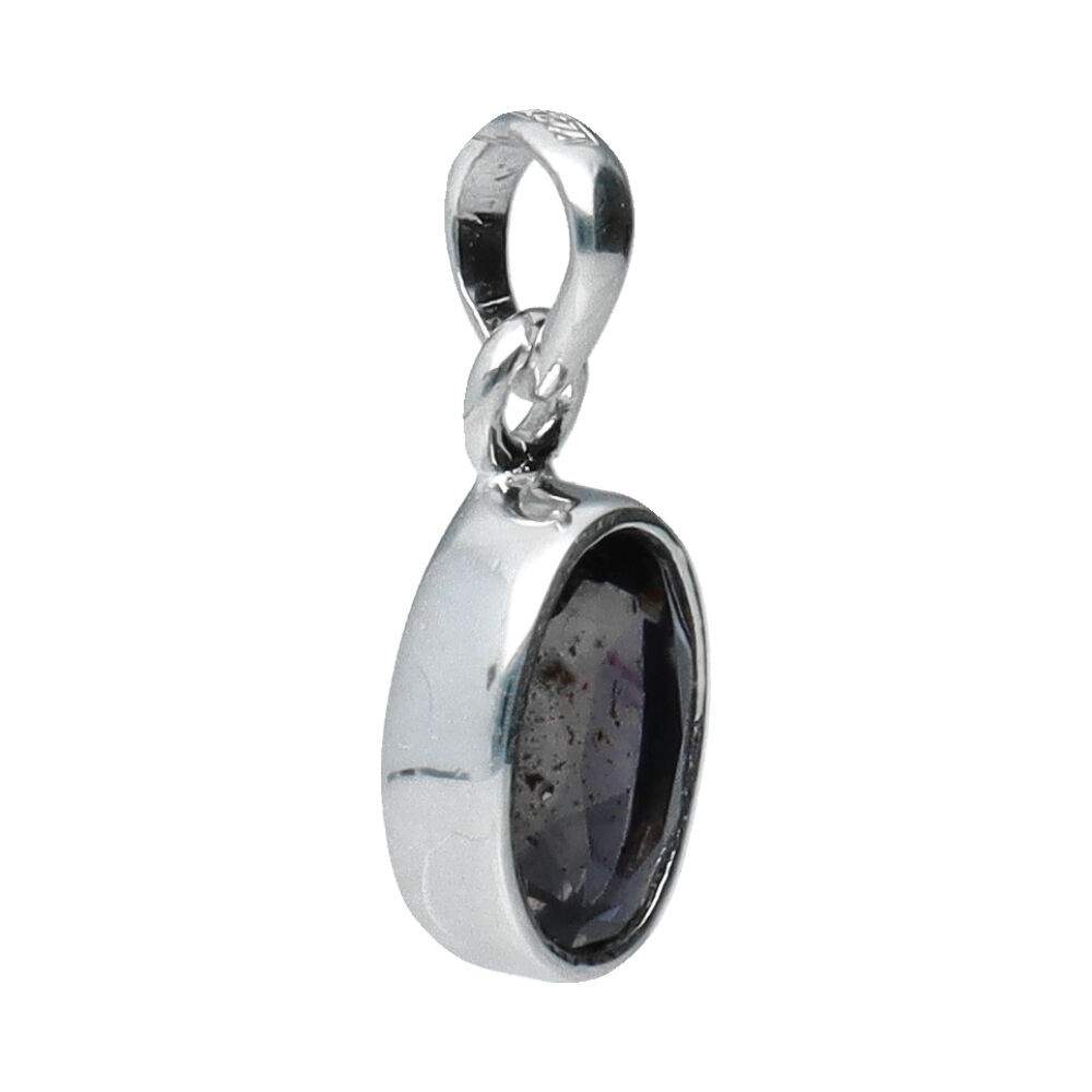 Pendentif cercle à facettes en quartz fumé - argent 925