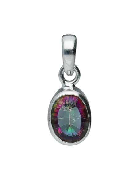 Pendentif ovale à facettes en argent 925 avec topaze mystique