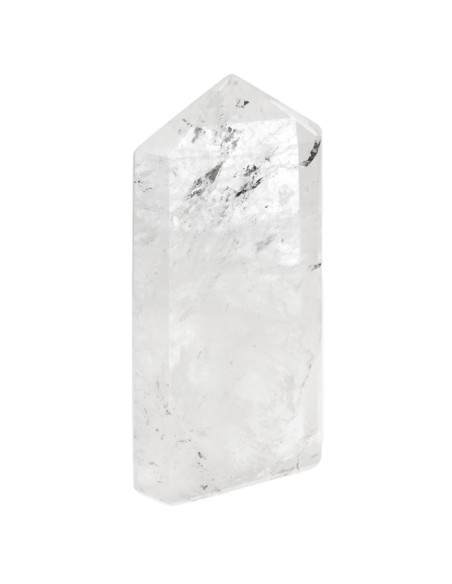 Le quartz blanc ou transparent, également appelé cristal de roche, est une variété de quartz cristallin incolore. Il est composé de dioxyde de silicium, appartient au groupe des silicates-tectosilicates et a une dureté de 7 sur l'échelle de Mohs. Les cristaux de quartz ont généralement la forme d'un prisme hexagonal avec des faces pyramidales aux extrémités. On peut les trouver isolés en pointes doubles ou en amas formant des jumeaux, des druses ou des géodes.