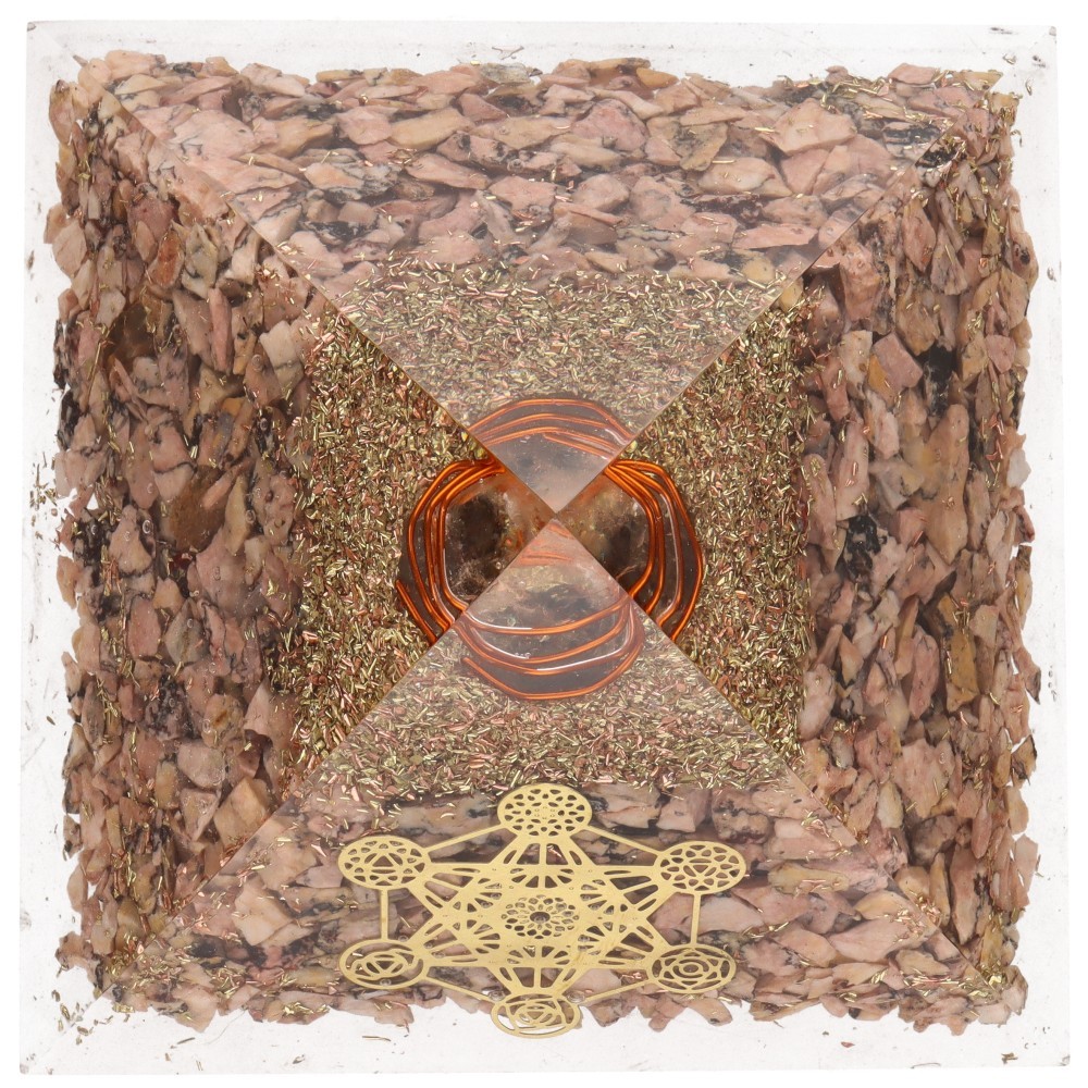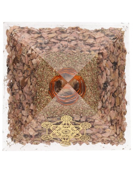 Pyramide en résine de rhodonite avec Metatron 7x7cm