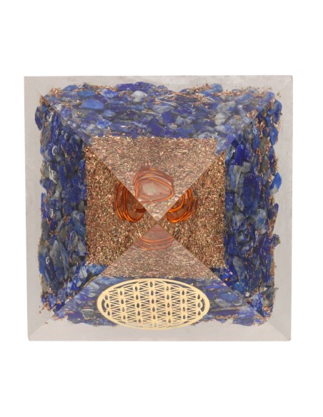 Pyramide en Lapis Lazuli Résine Orgonite avec Fleur de Vie 7x7cm