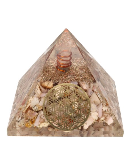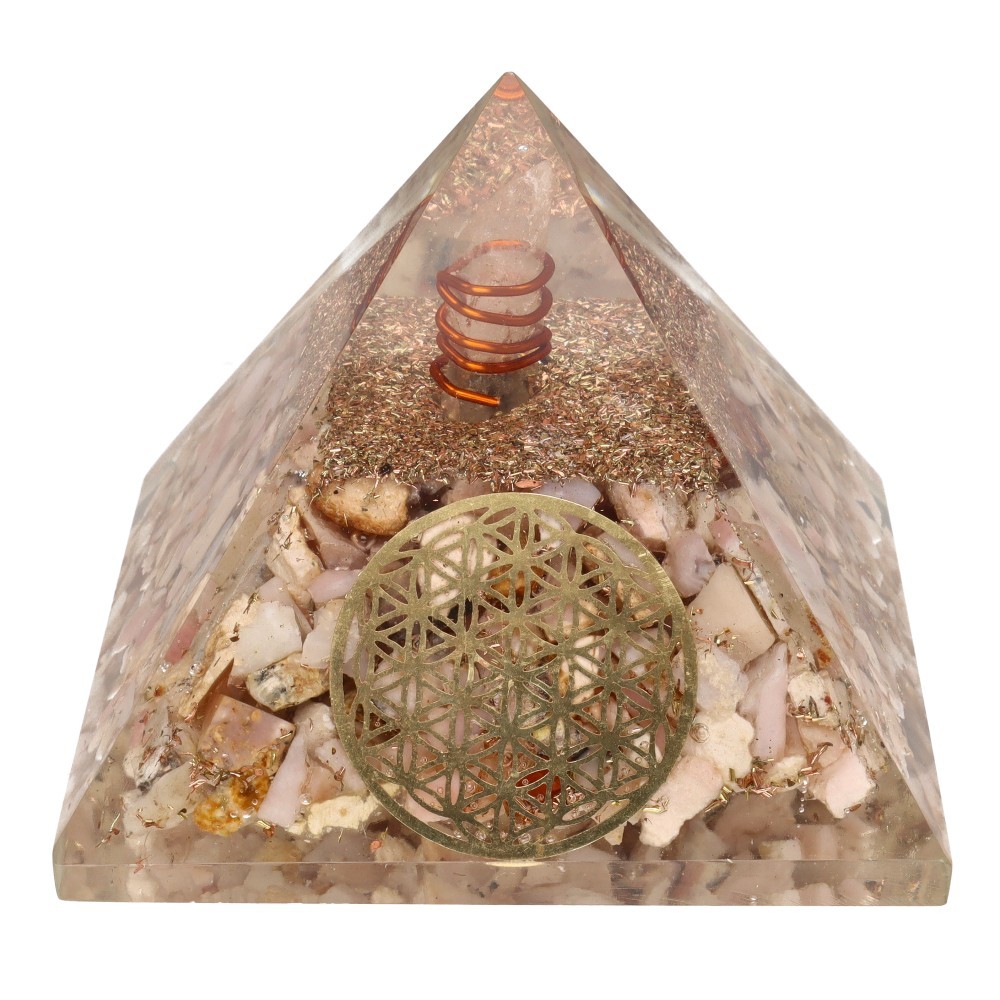 Pyramide d'Orgonite en Résine Opale Rose avec Fleur de Vie 7x7cm