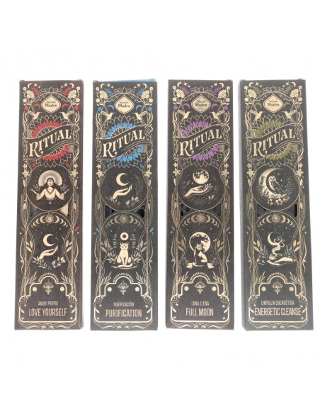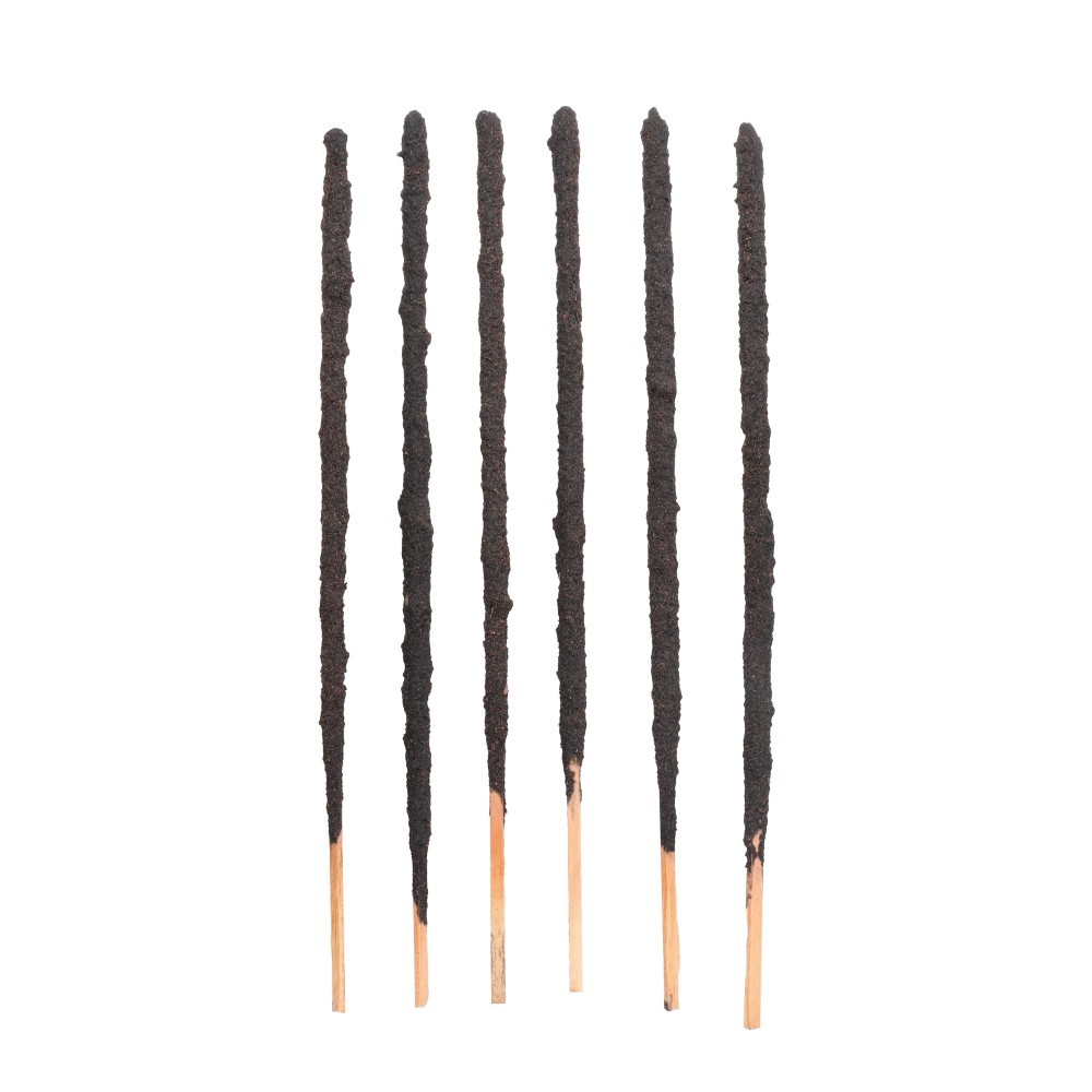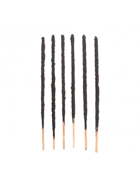 Modo de uso: Encender la punta del Sahumerio y apagar la llama, dejando que se produzca una pequeña brasa