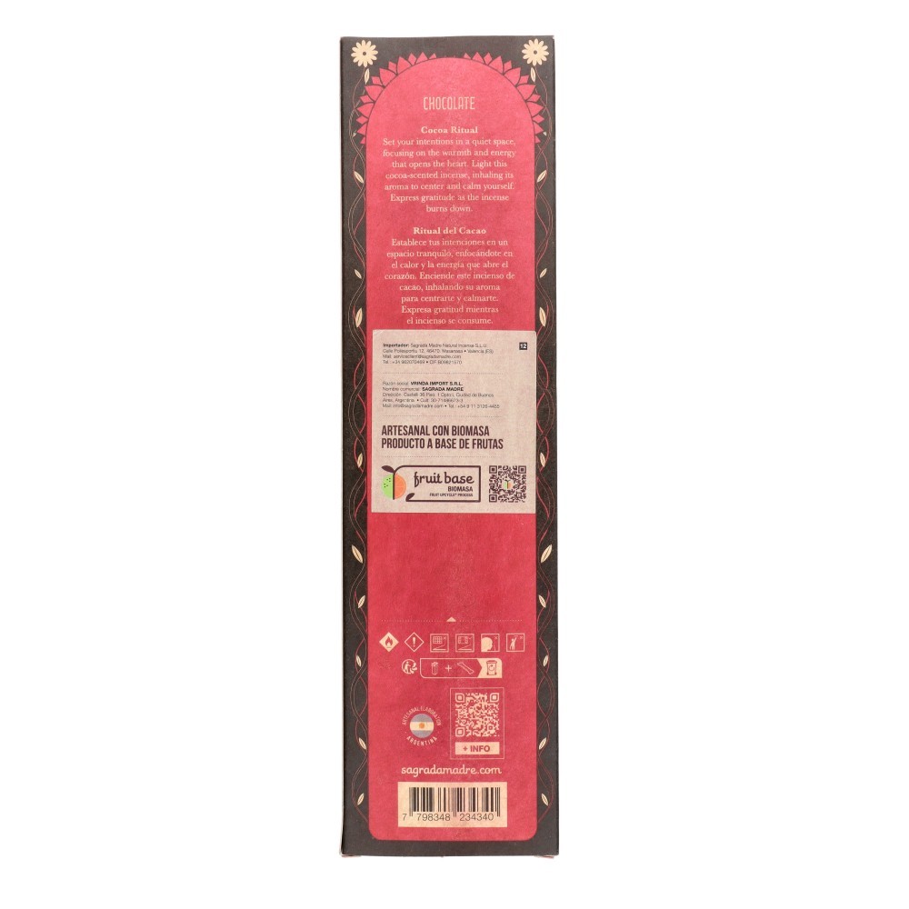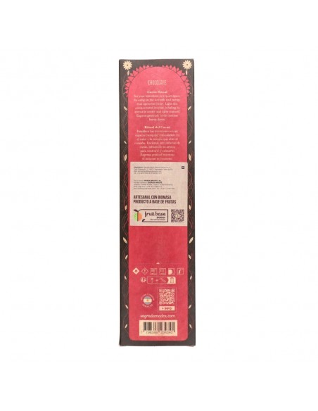 Modo de uso: Encender la punta del Sahumerio y apagar la llama, dejando que se produzca una pequeña brasa