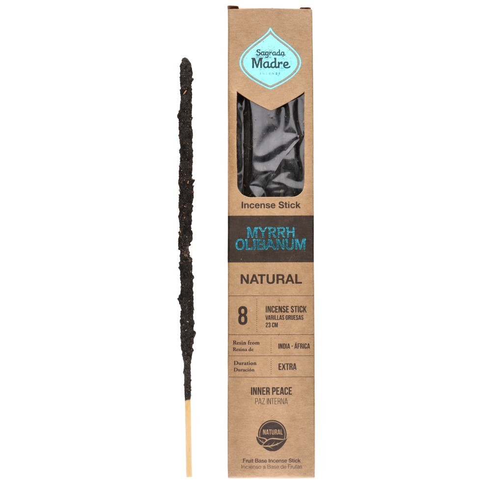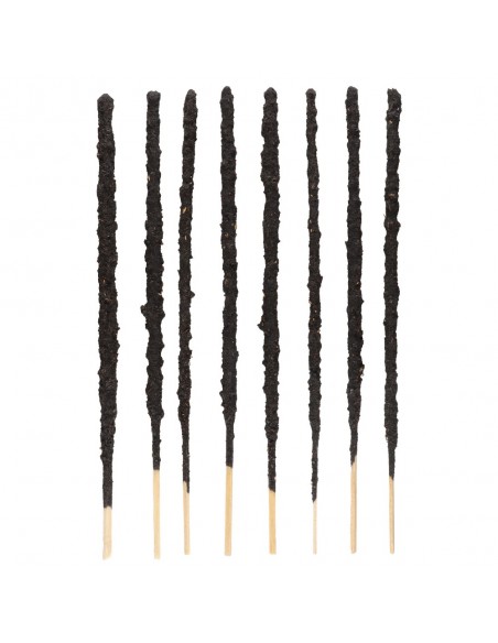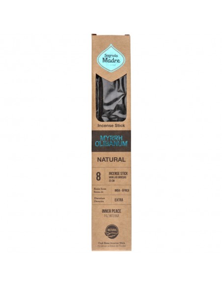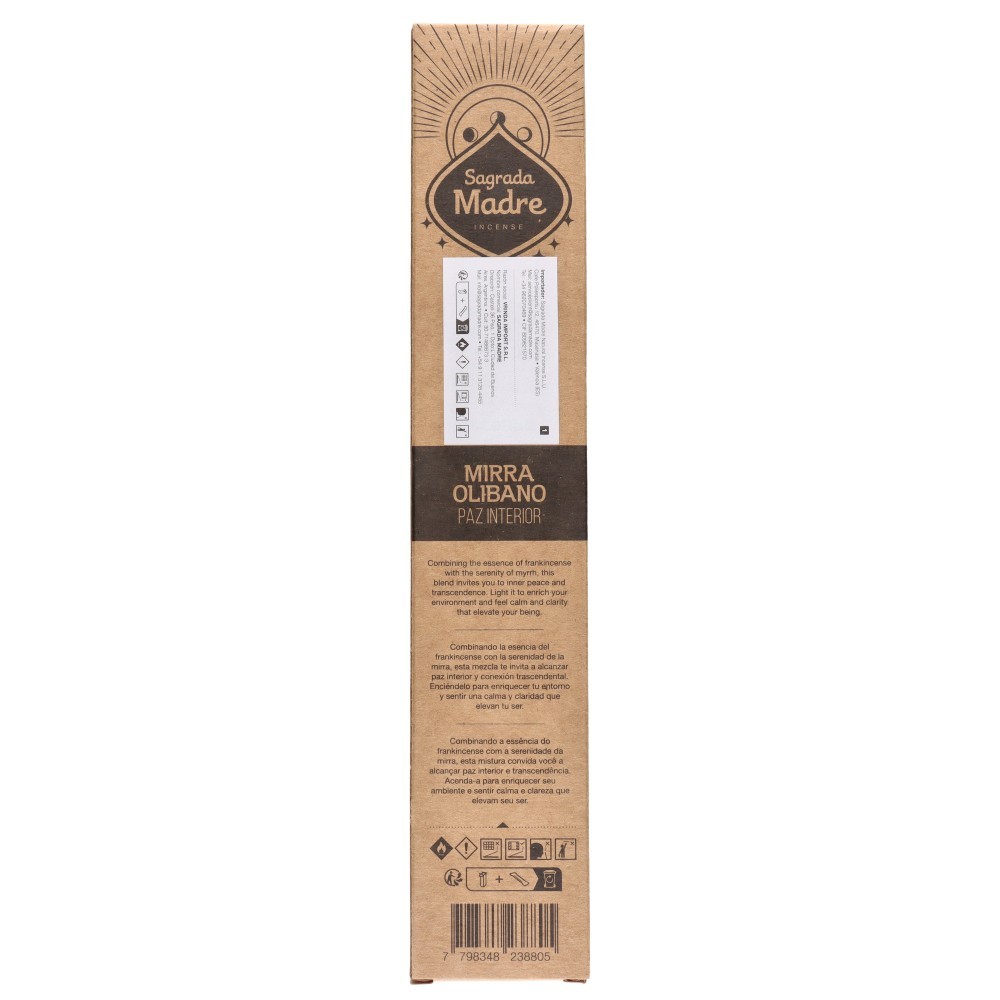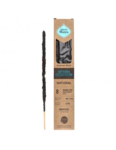 Hecho con resina de olíbano y mirra, aceite concentrado de mirra y olíbano, biomasa de fruta, carbón vegetal y sal