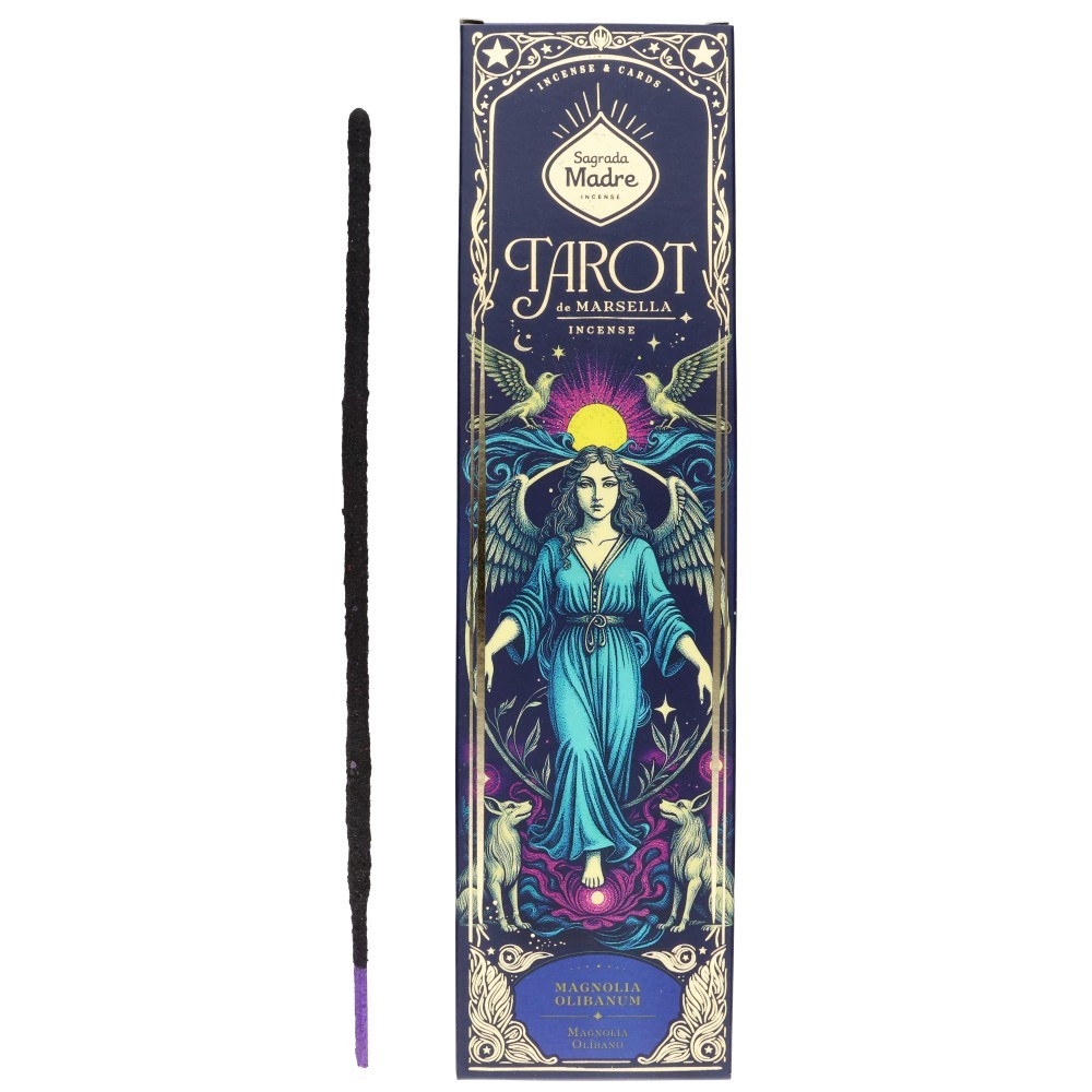 Incienso Tarot de Marsella Magnolia – Olibano Sagrada Madre. Varitas de incienso artesanal con aroma floral y amaderado, ideales para meditación, relajación y purificación de espacios. Combustión uniforme y fragancia duradera para ambientes equilibrados y acogedores.