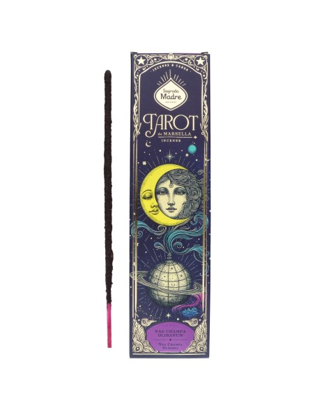Incienso Tarot de Marsella Nag Champa – Olibano Sagrada Madre. Varitas de incienso artesanal con aroma dulce y amaderado, ideales para meditación, relajación y purificación de espacios. Combustión uniforme y fragancia duradera para ambientes equilibrados y acogedores.
