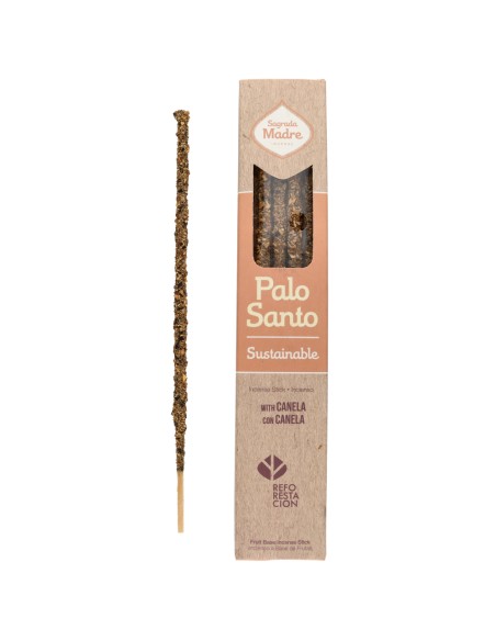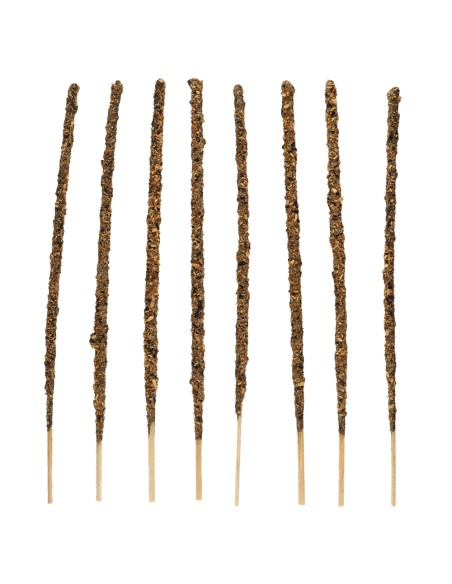 Hecho con madera de palo santo, aceite concentrado aromático, carbón vegetal, biomasa de fruta, aglutinante natural y sal.