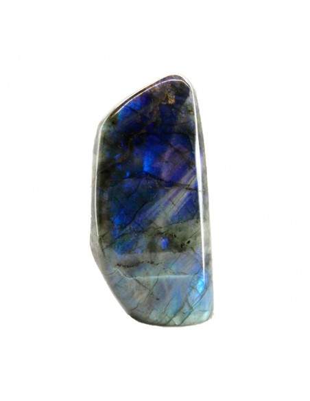 La labradorite appartiene alla famiglia dei feldspati plagioclasici ed è di solito di colore grigio scuro o bluastro. Si caratterizza per la sua iridescenza cromatica in diversi toni di viola, blu, arancione, verde e dorato. Questi bagliori metallici sono il risultato della labradorescenza che presenta la sua superficie. La labradorite mostra anche spesso linee parallele dovute alle maclas che la formano. Appartiene al gruppo dei silicati-tettosilicati e ha una durezza di 6-6,5 sulla scala di Mohs.