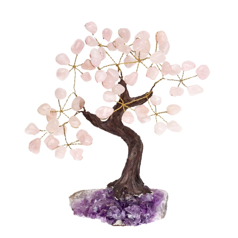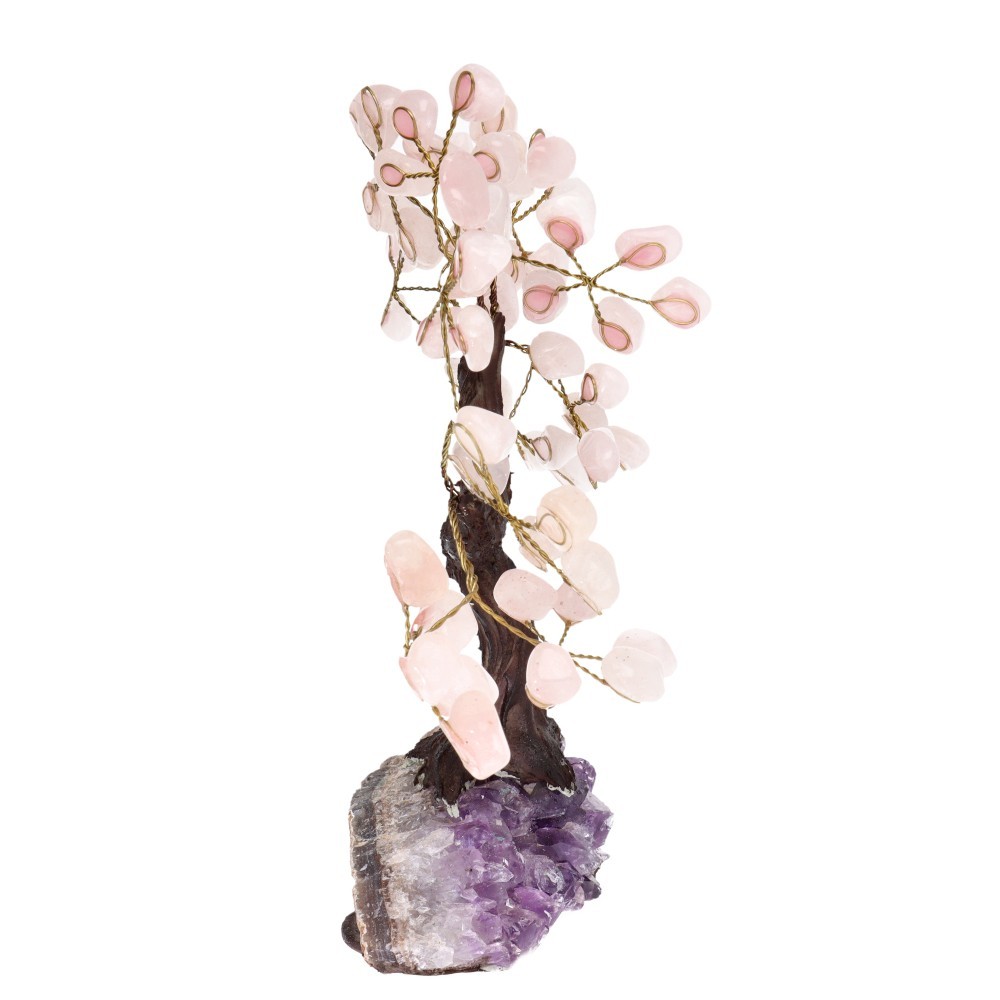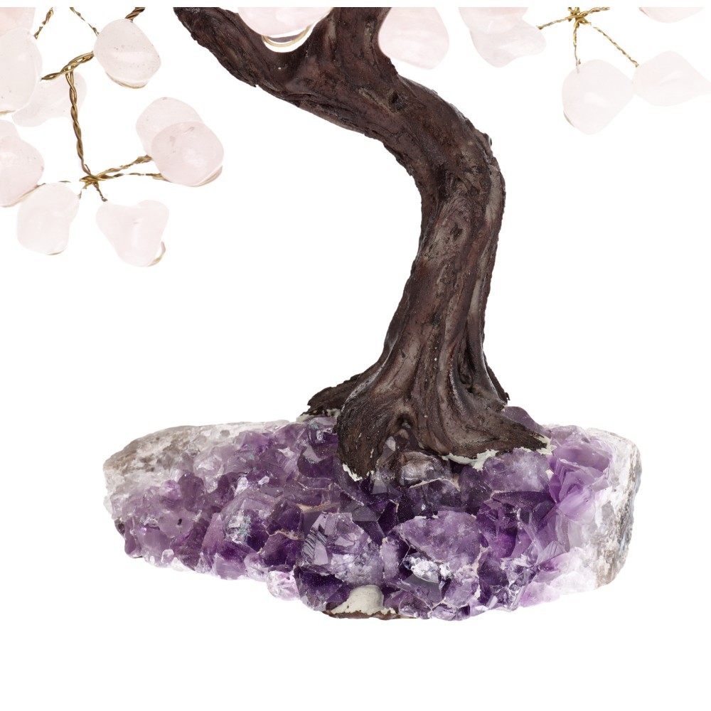 Albero di Quarzo Rosa Piccolo con Base di Drusa di Ametista