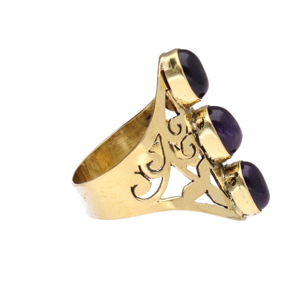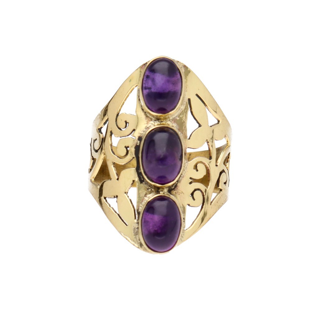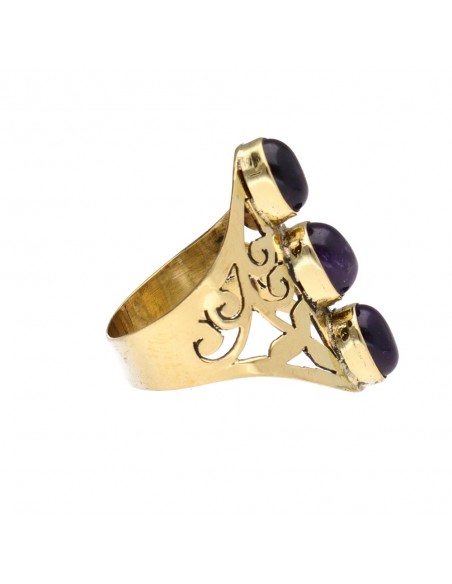Anello in bronzo traforato con ametista -1-