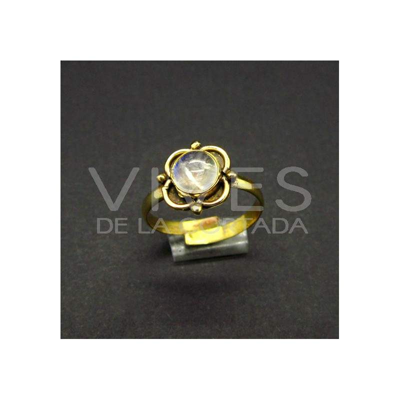 Anello in bronzo regolabile con fiore e pietra lunare -6-