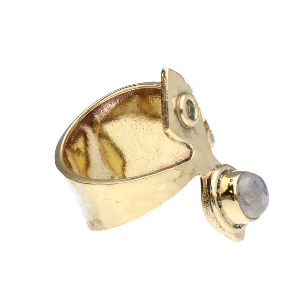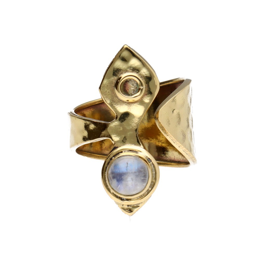 Anello in bronzo con pietra di luna e rombo regolabile -15-