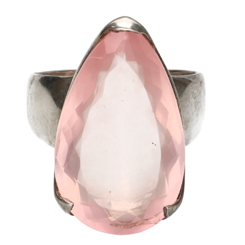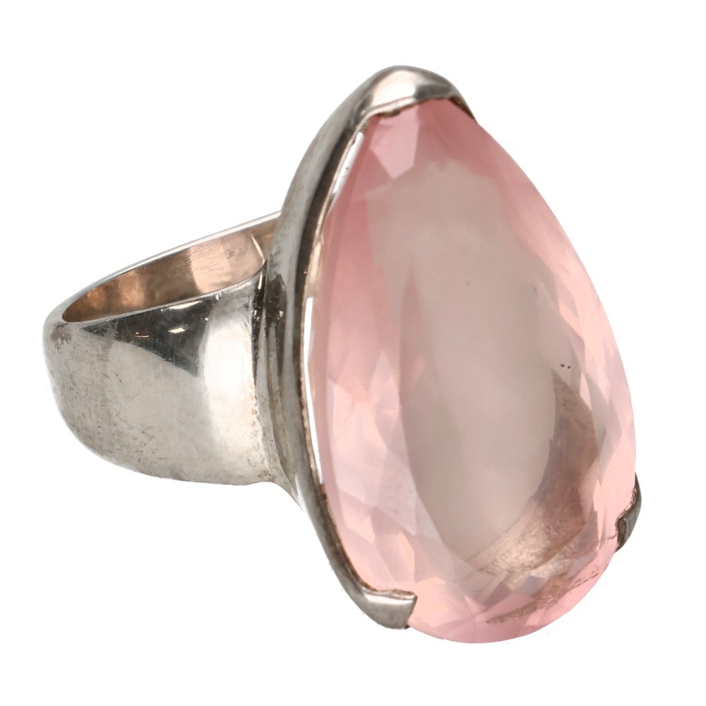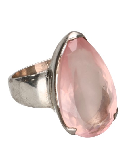 Anello in quarzo rosa sfaccettato in argento sterling 925 (93Q)