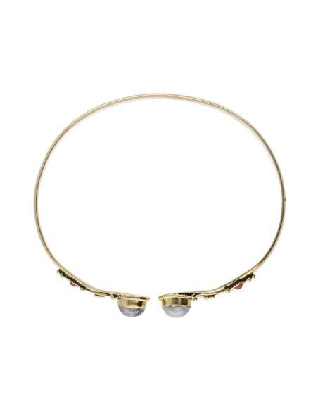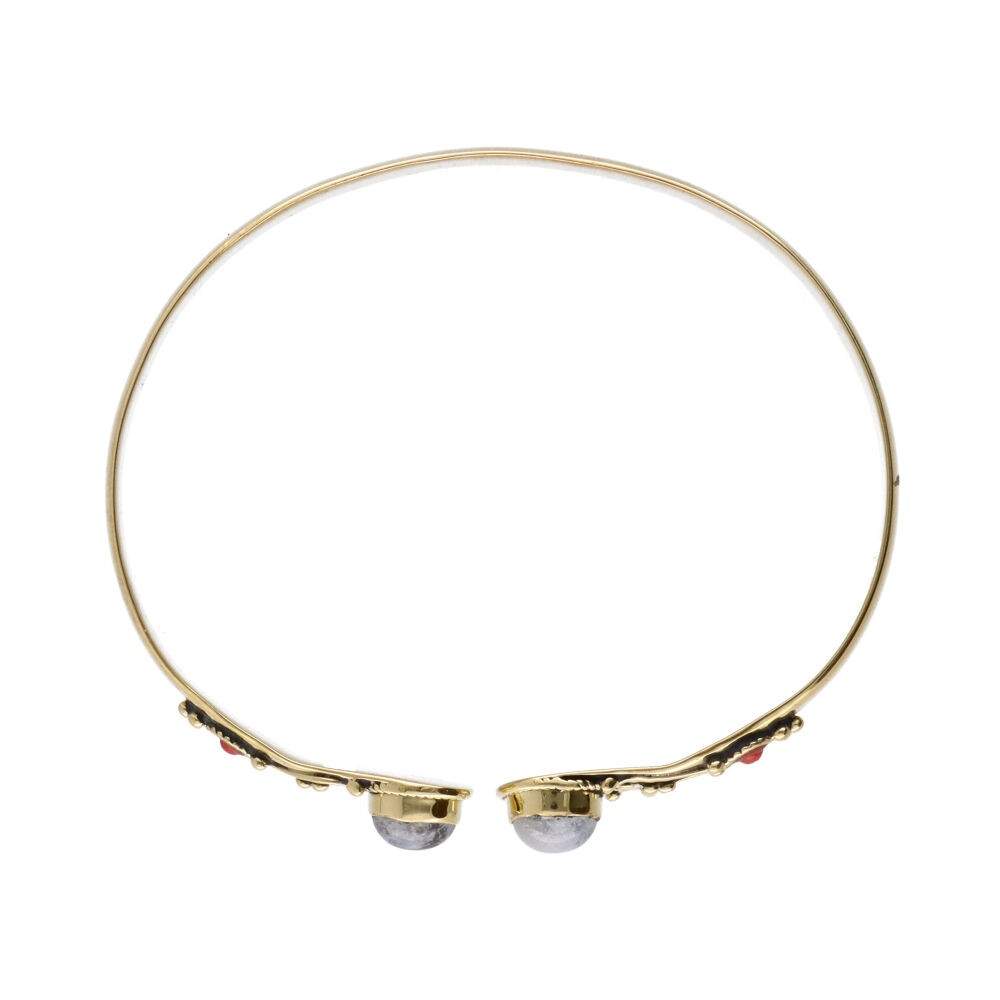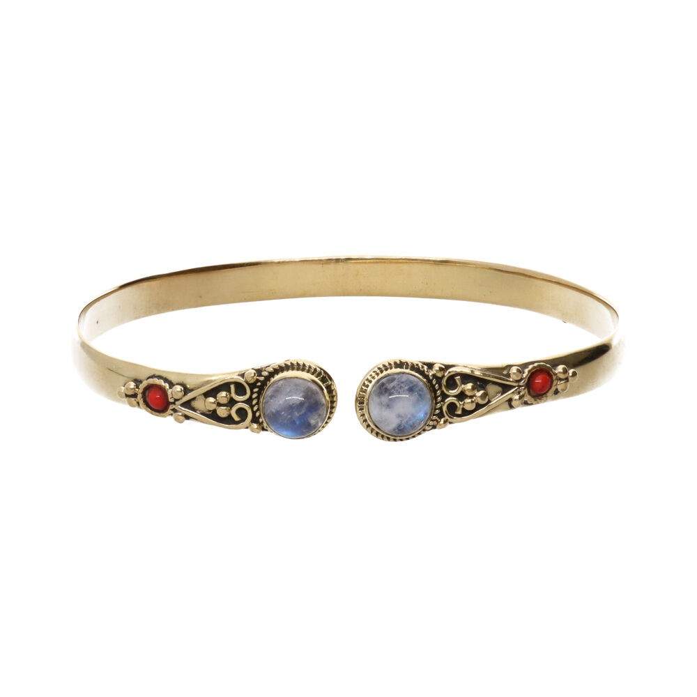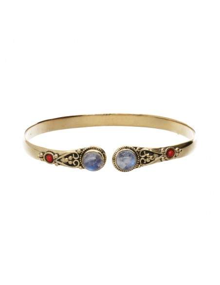 Braccialetto in bronzo con doppia pietra lunare rossa -21-