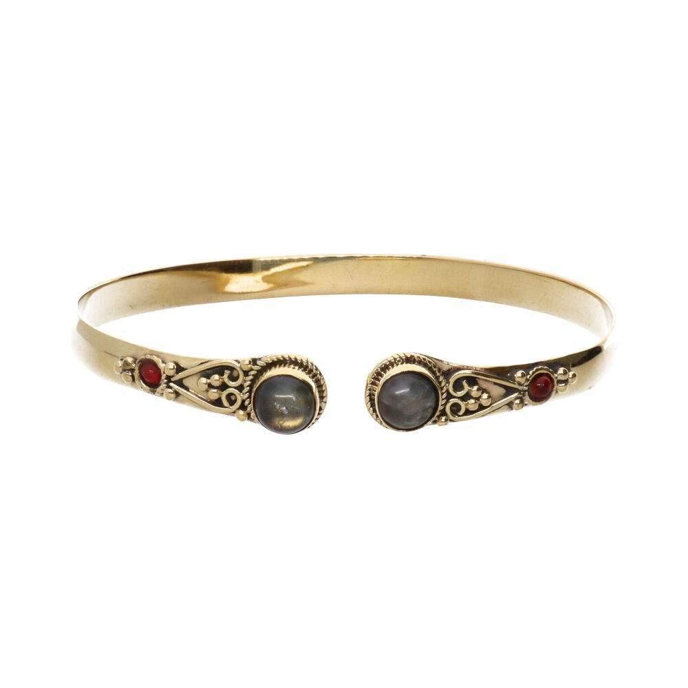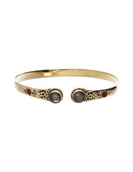 Bracciale in bronzo con doppia labradorite rossa -25-