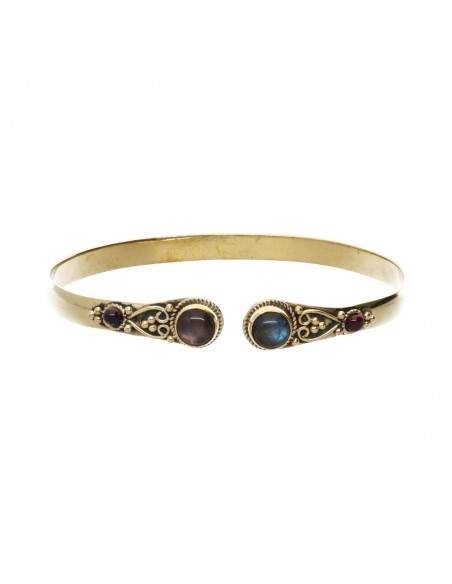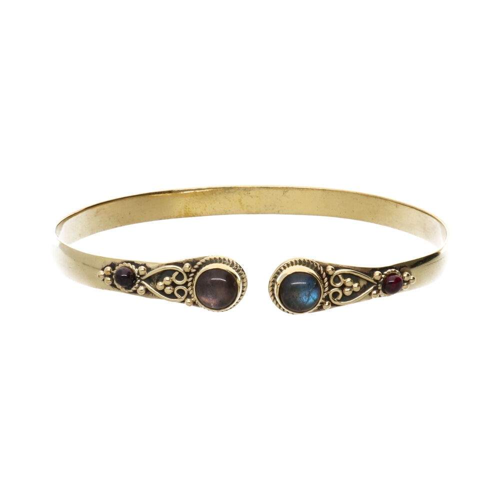 Bracciale in bronzo con doppia labradorite granata -25.2-