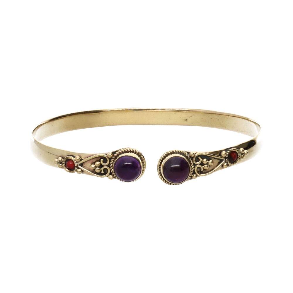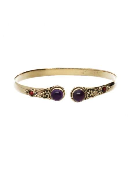 Bracciale in bronzo con doppia ametista rossa -27-
