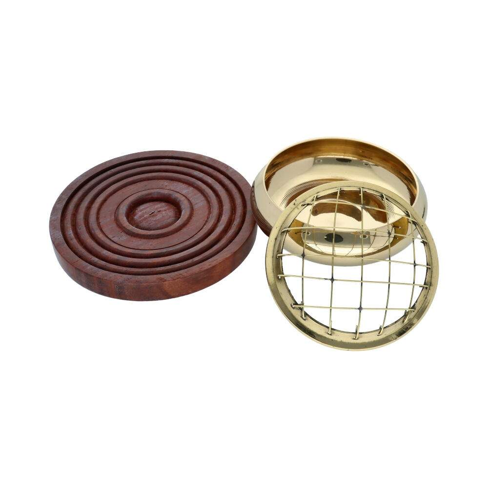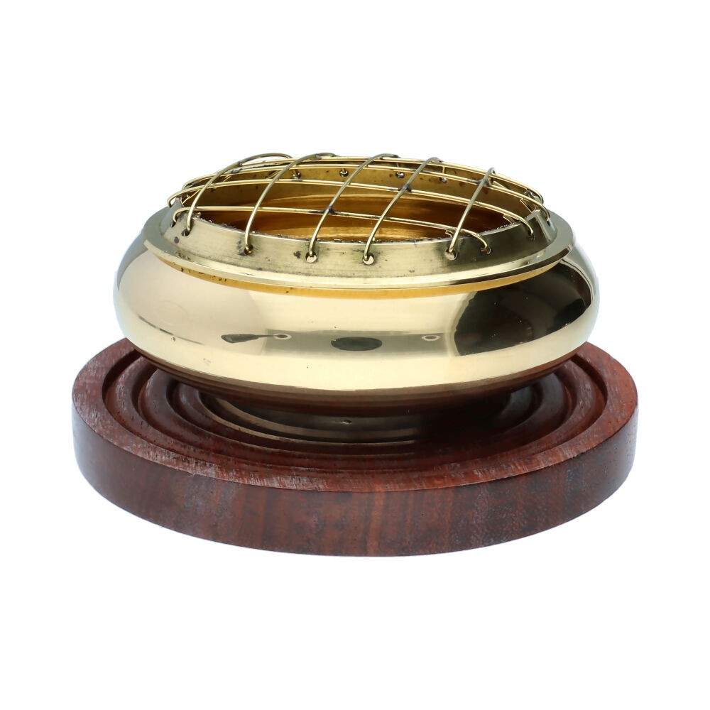 Bruciaprofumi piccolo in bronzo con base in legno.