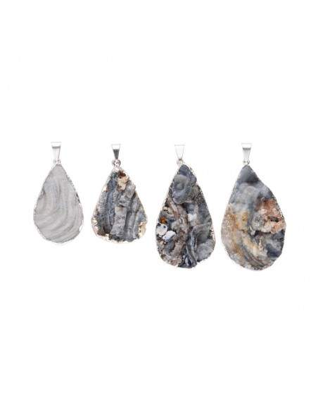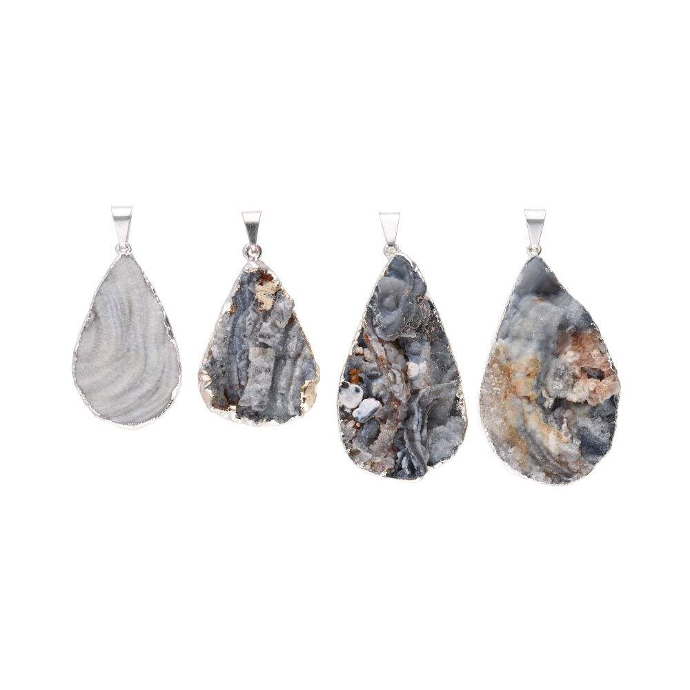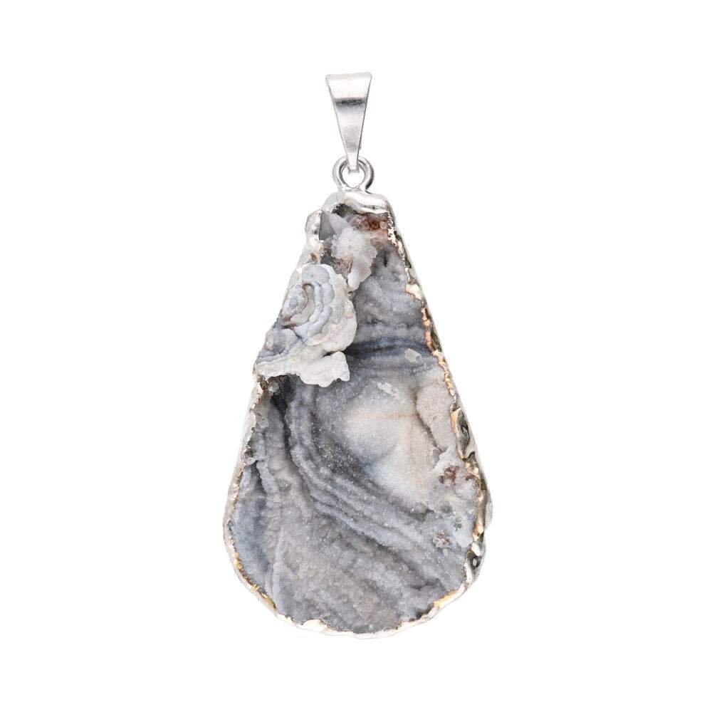 Ciondolo Goccia di Calcedonia Cristallizzata Grezza in Bagno d'Argento