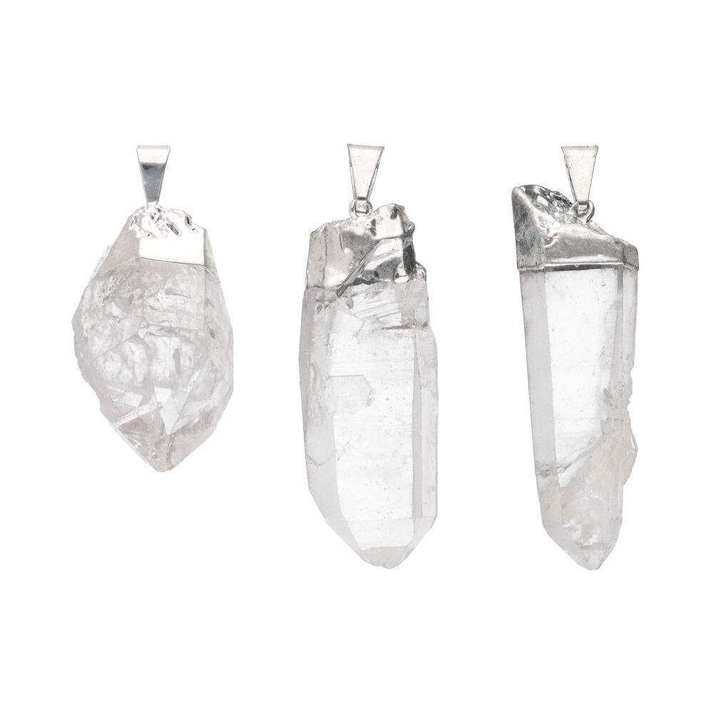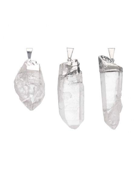 Pendente a punta grezza piccolo in quarzo placcato in argento