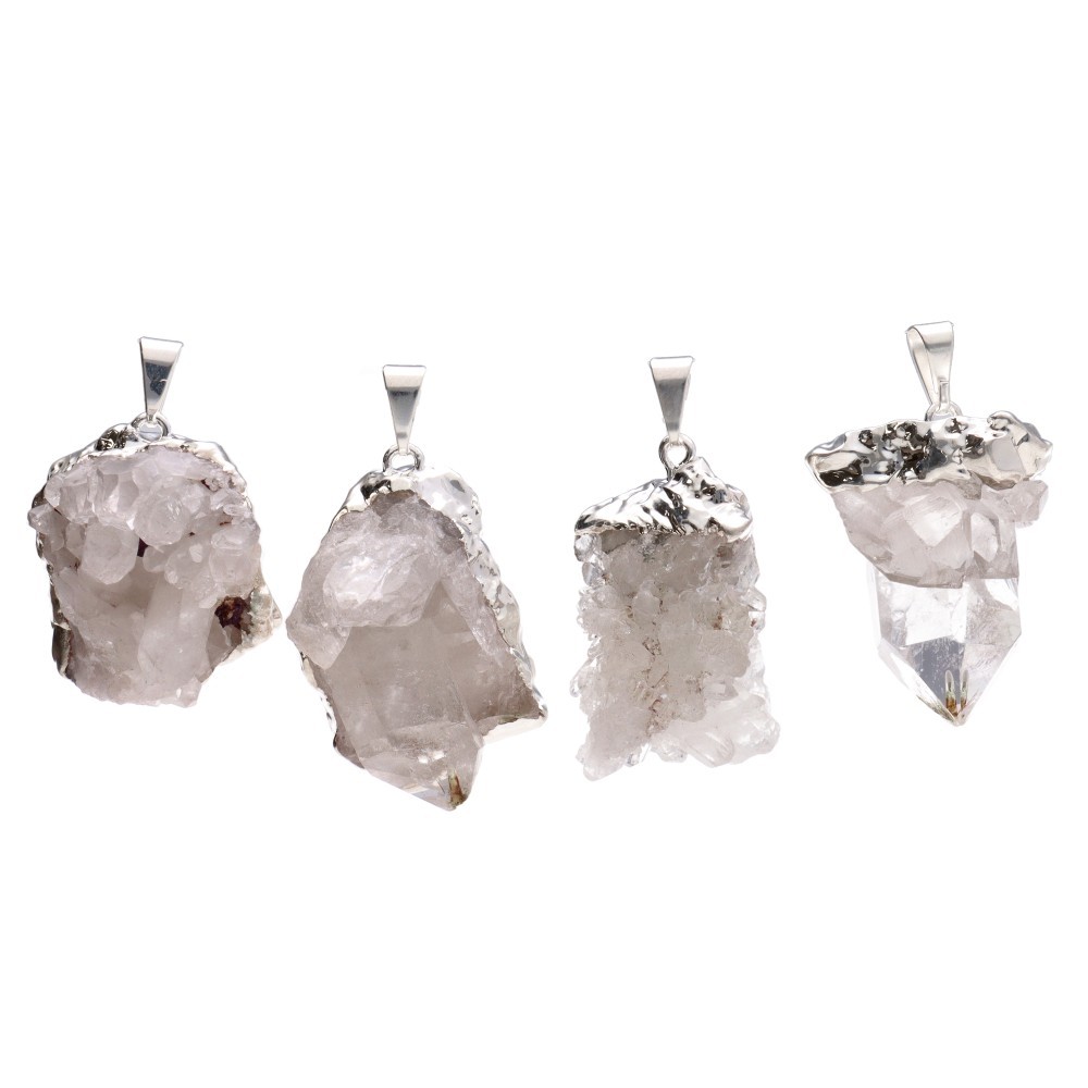 Pendente Drusa di Quarzo Grezzo - Placcatura in Argento