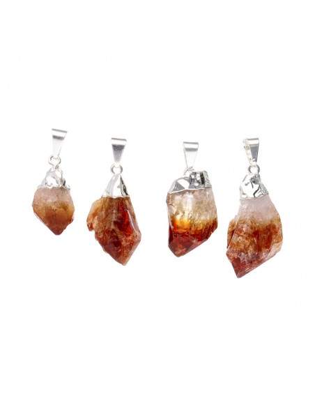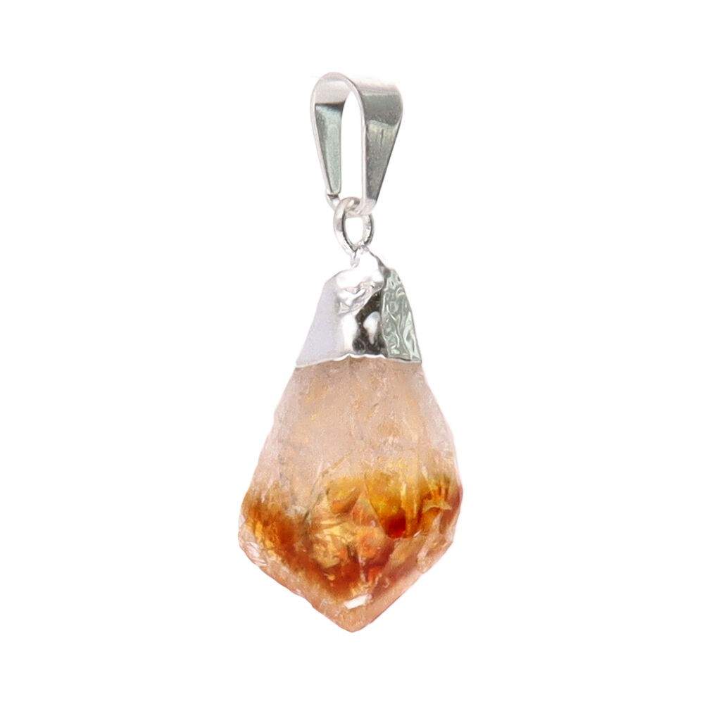 Ciondolo a punta di citrino riscaldato grezzo in bagno d'argento