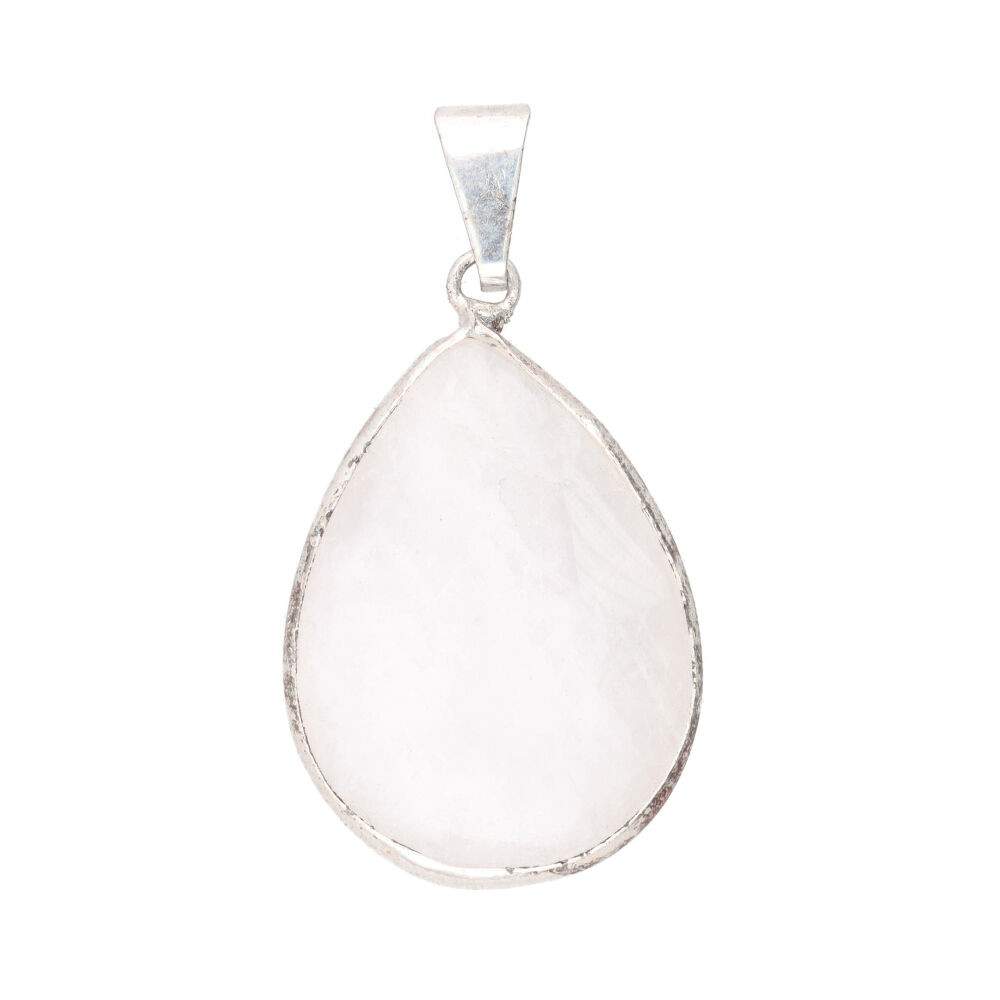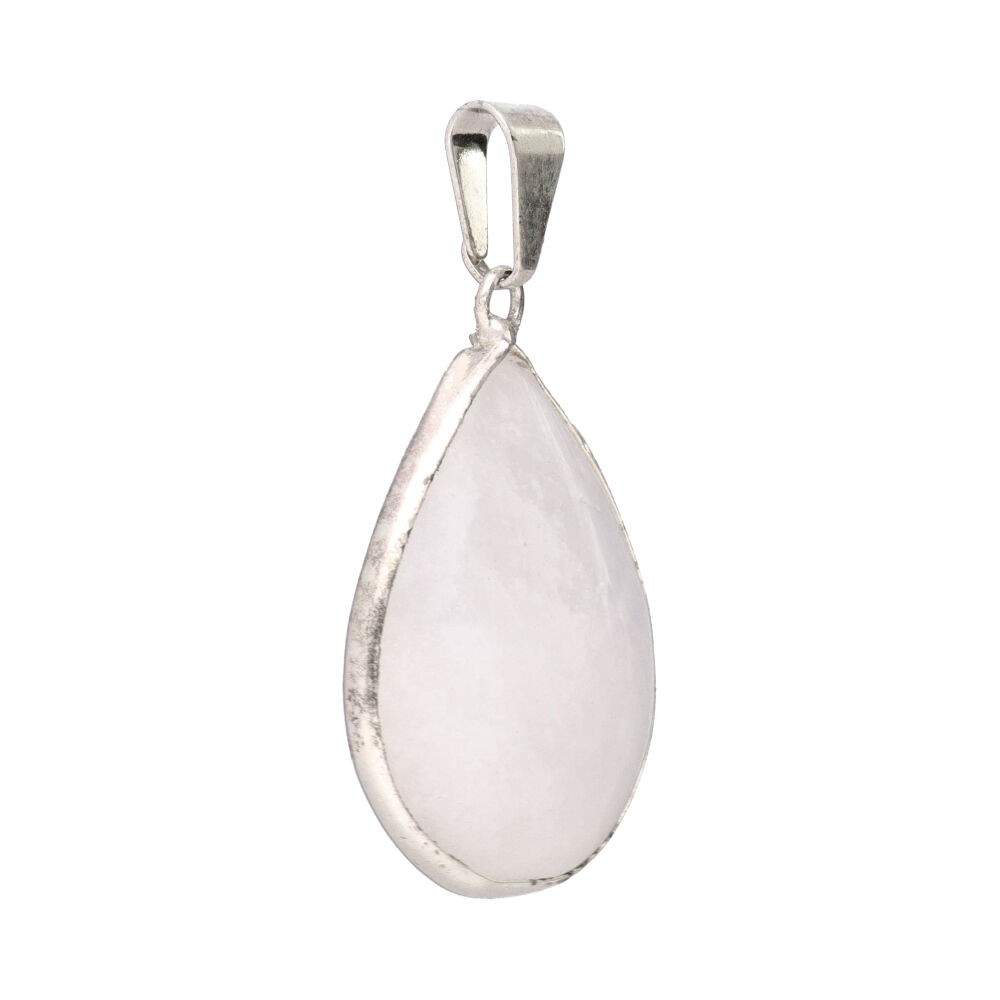 Pendente Goccia di Quarzo Latteo in Bagno d'Argento