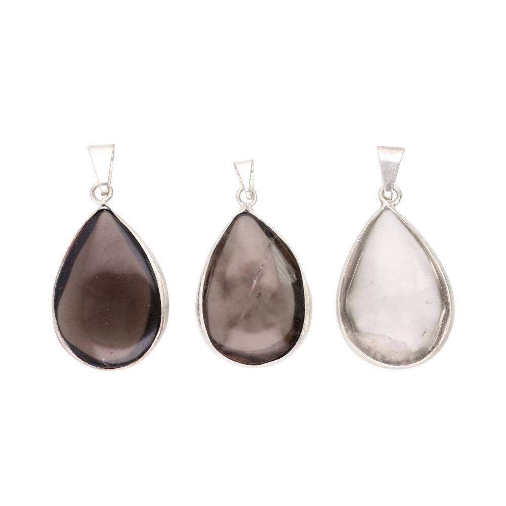 Ciondolo Goccia di Quarzo Fumé in Bagno d'Argento
