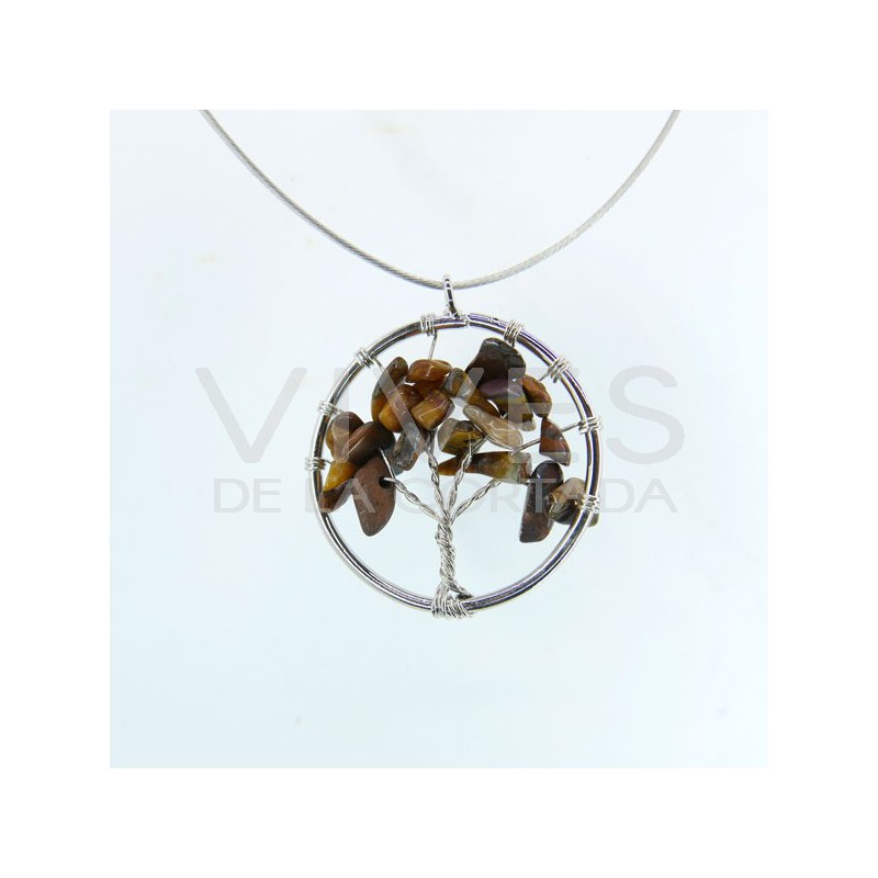 Ciondolo Albero della Vita con Occhio di Tigre - Placcato Argento