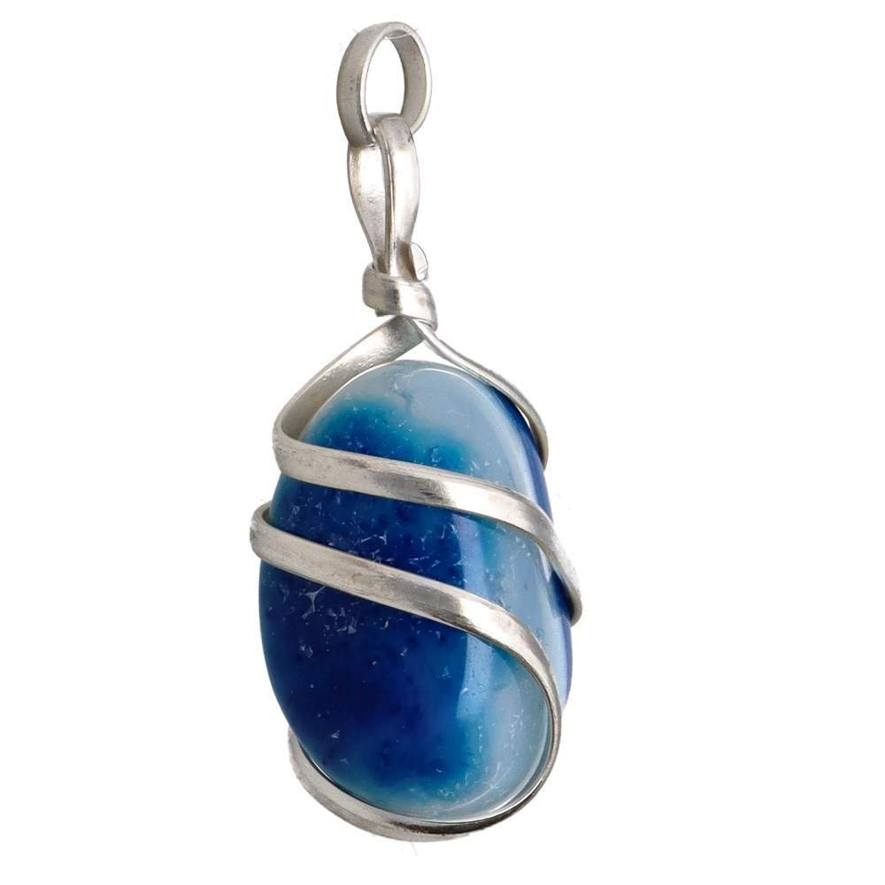 Ciondolo di Agata Blu Tinta con Spirale in Placcatura d'Argento