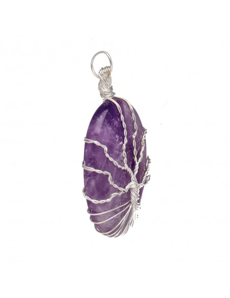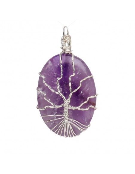 Collana con Pendente in Ametista e Albero della Vita - Placcato Argento