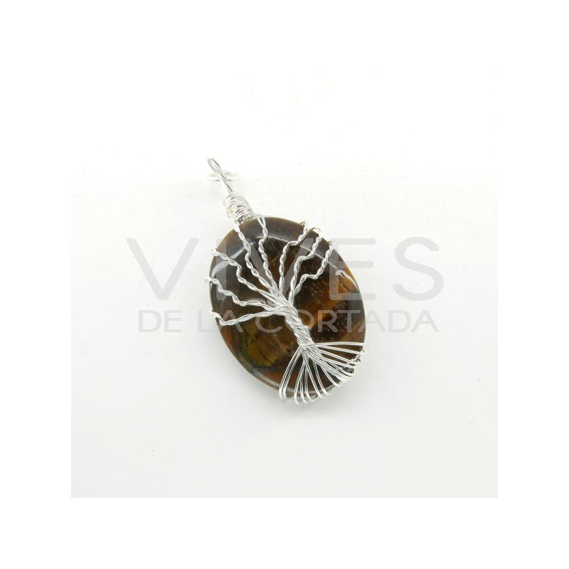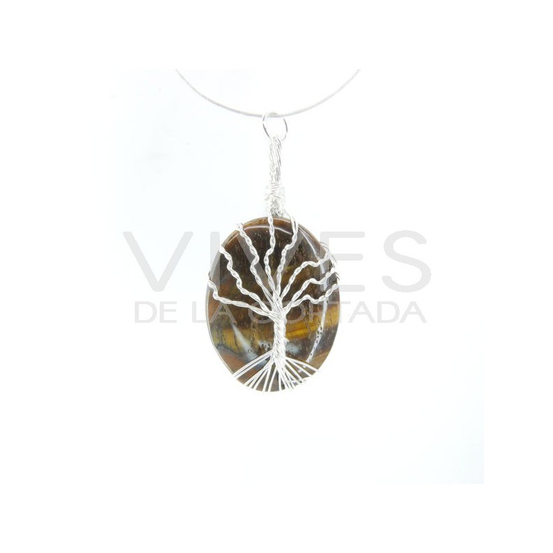 Collana con Occhio di Tigre e Pendente Albero della Vita - Placcato Argento
