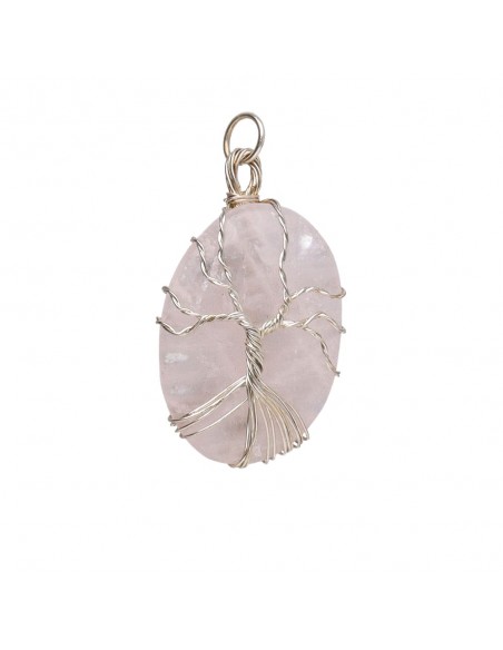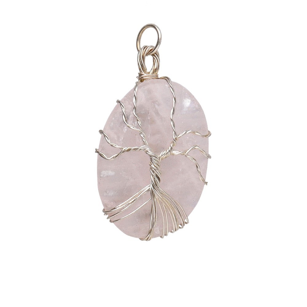 Collana in Quarzo Rosa e Albero della Vita - Placcatura in Argento