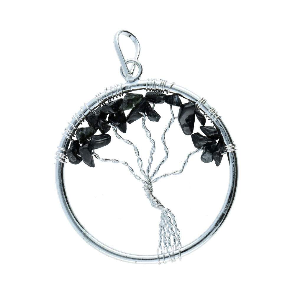 Ciondolo Albero della Vita con Tormalina Nera in Placcatura d'Argento