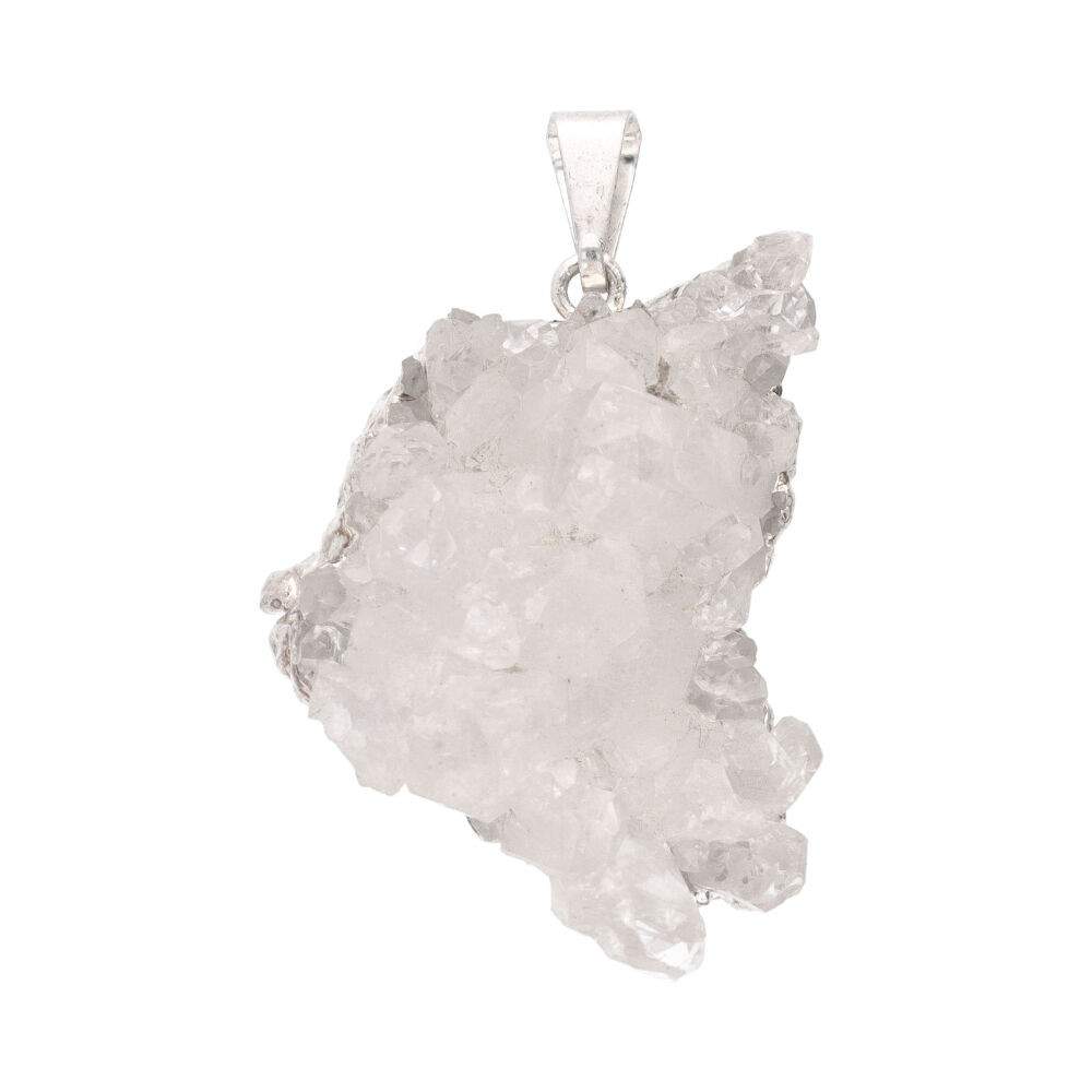 Ciondolo Goccia di Calcedonia Cristallizzata Grezza in Bagno d'Argento
