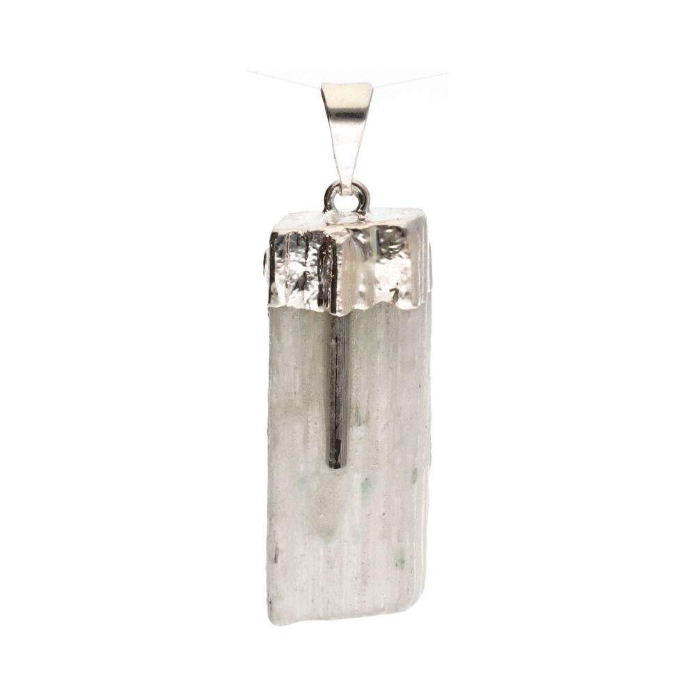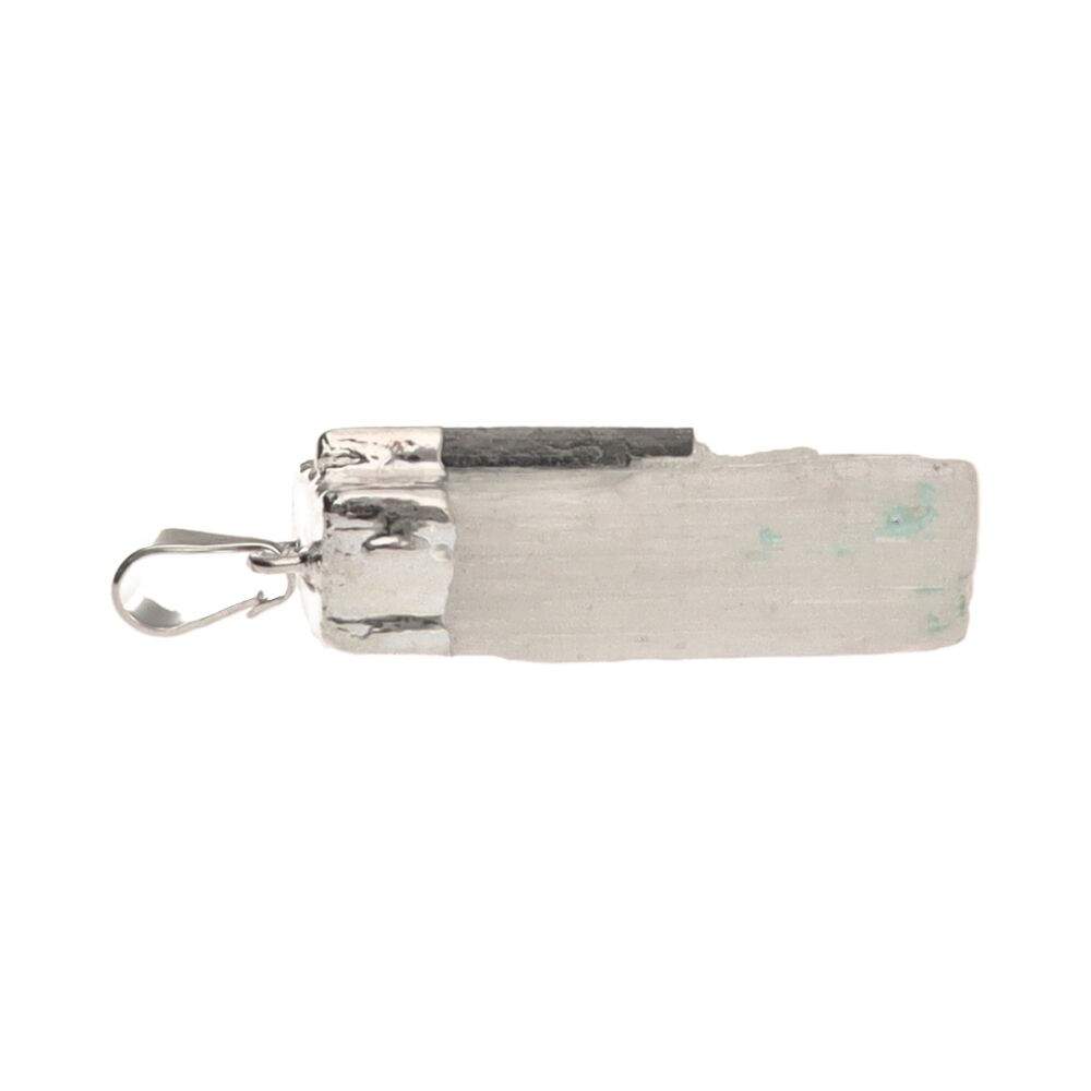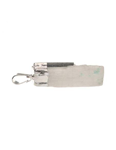 Ciondolo di Selenite con Tormalina in Bagno d'Argento