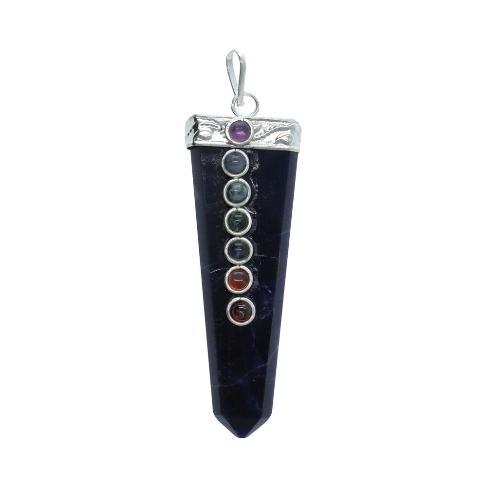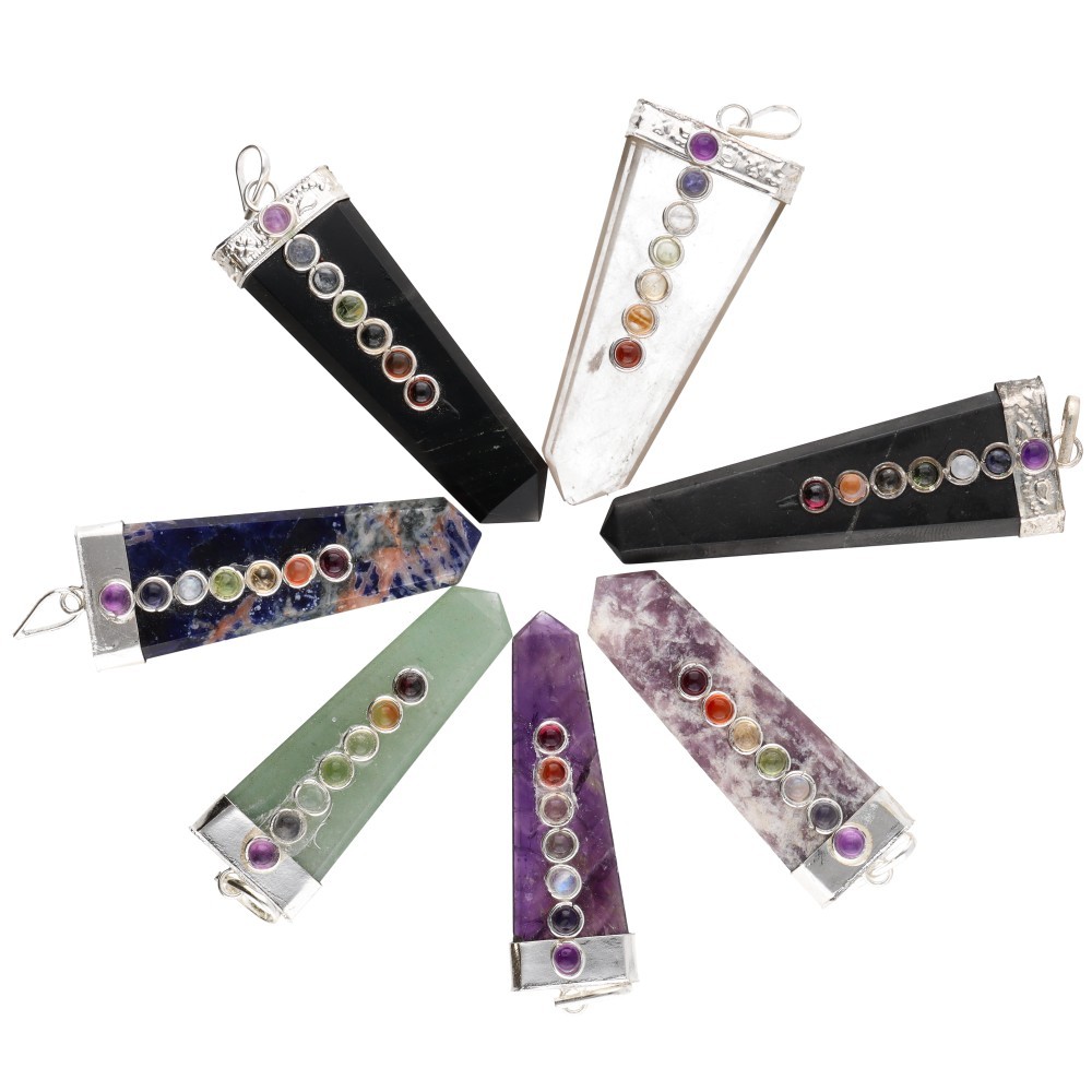 Ciondolo a punta piatta di shungite con chakra in bagno d'argento.