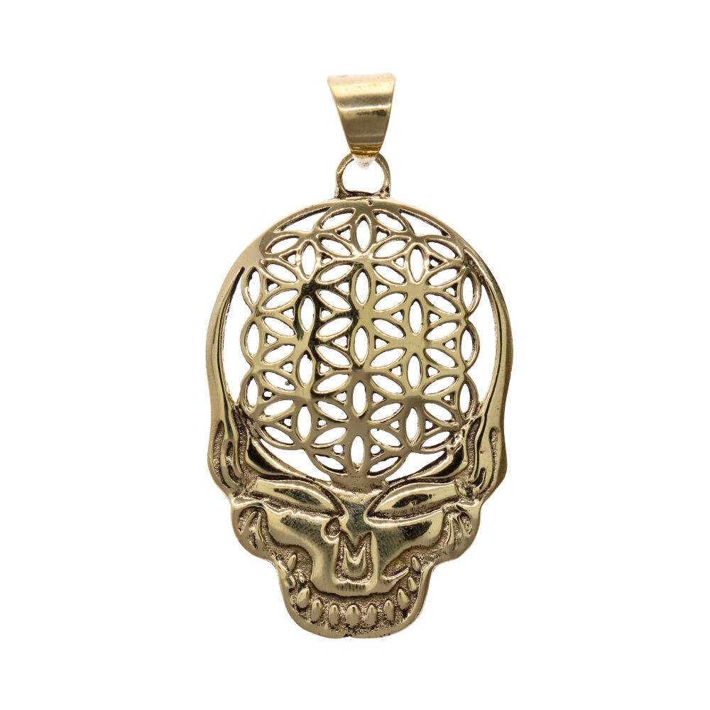 Ciondolo in Bronzo con Teschio e Fiore della Vita -13-