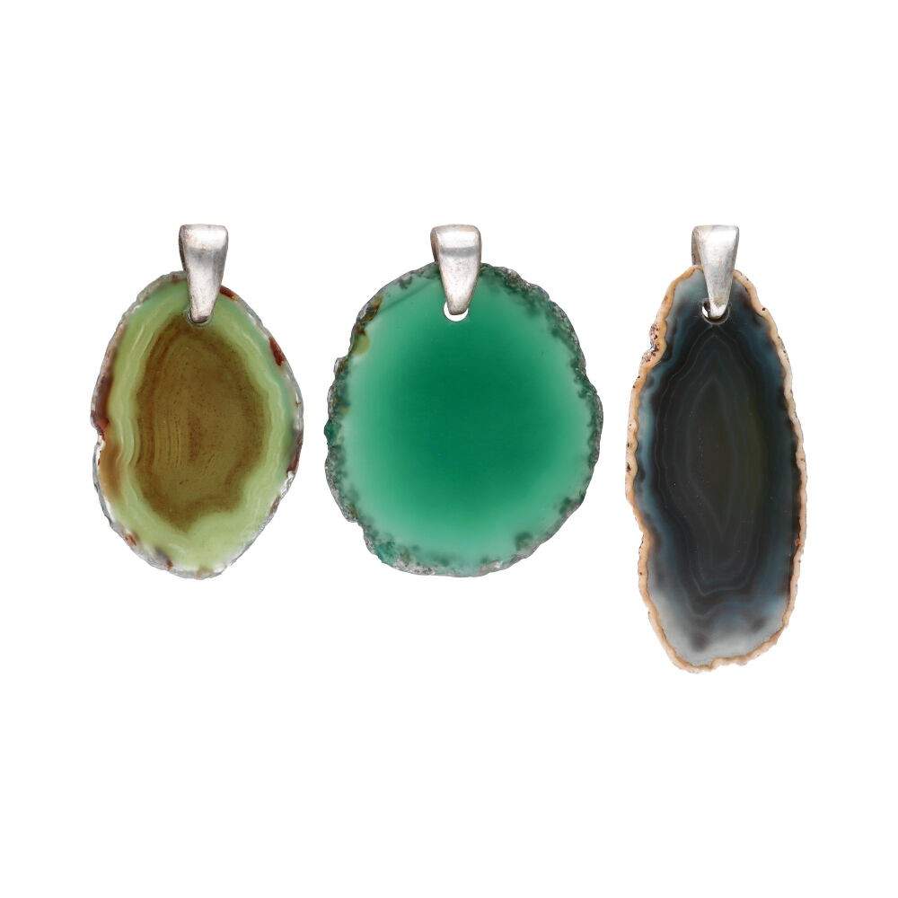 Ciondolo di Agata Colorata Verde in Bagno d'Argento