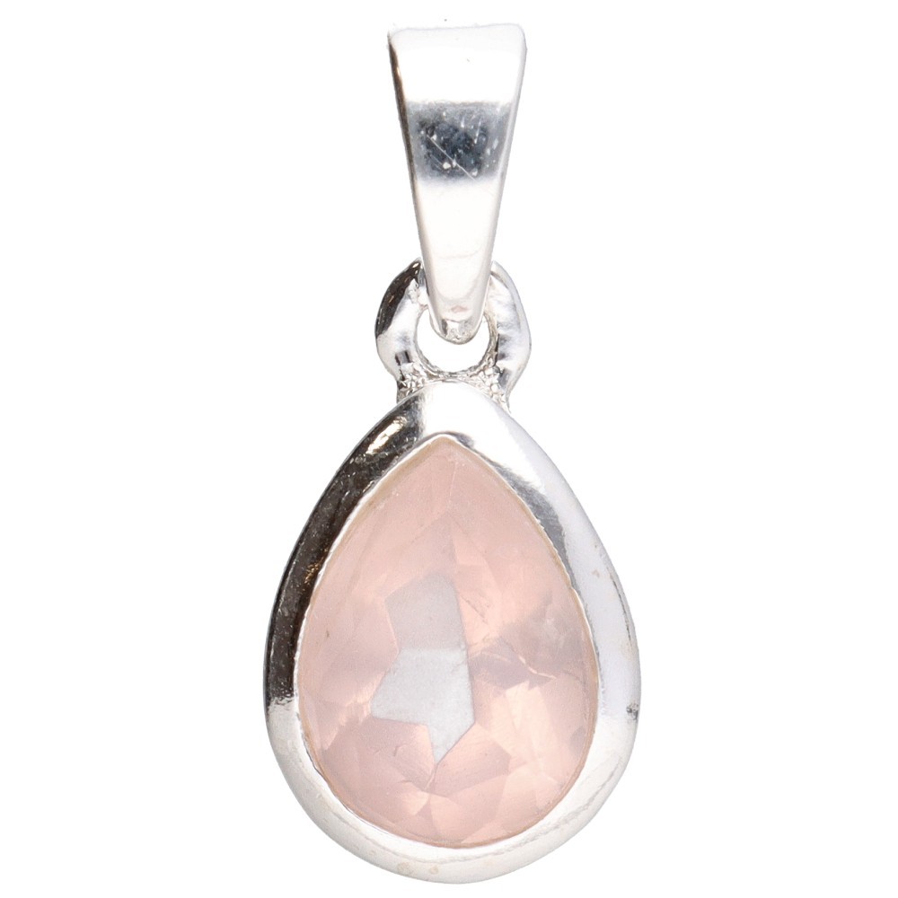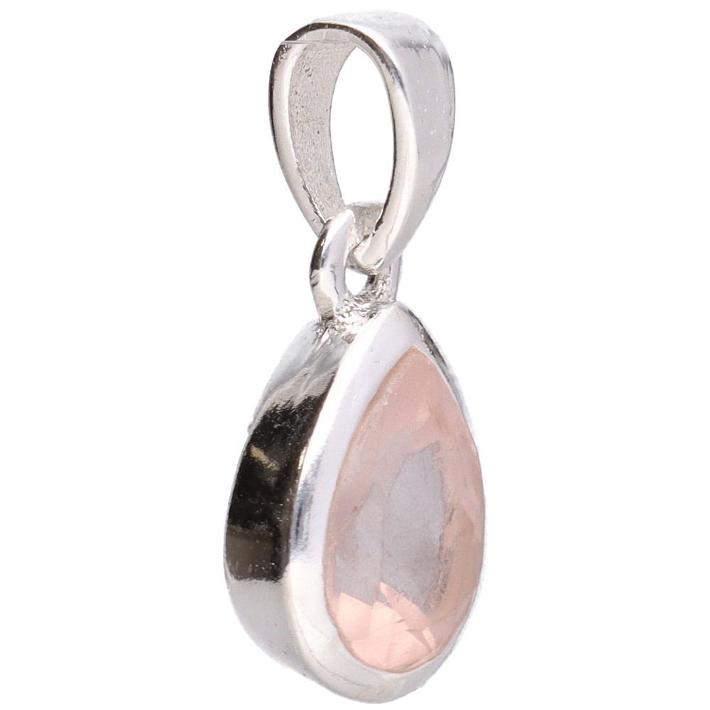Ciondolo in quarzo rosa sfaccettato di medie dimensioni in argento Sterling 925
