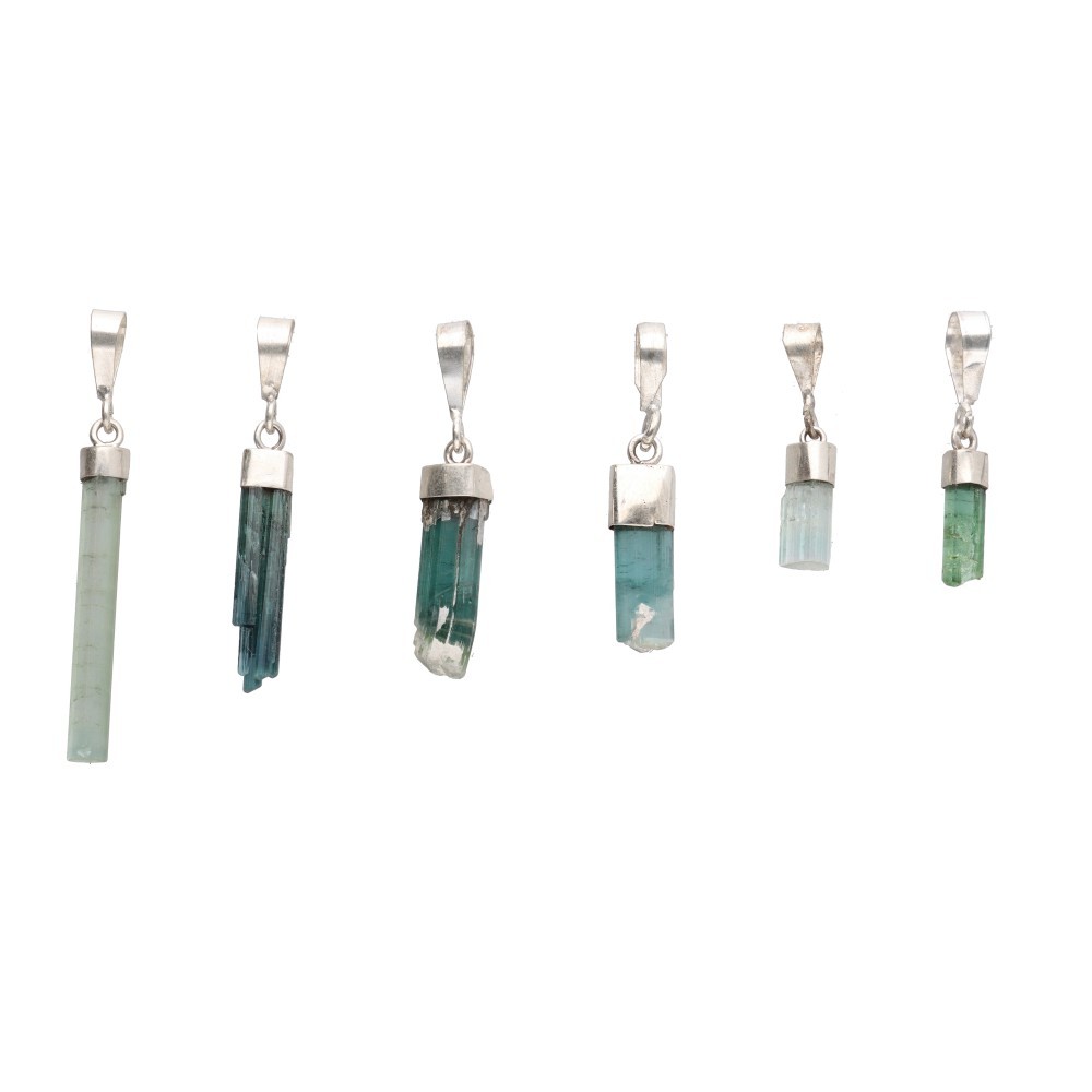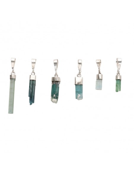 Pendente di Tormalina Blu Grezza in Argento Sterling 925 - B