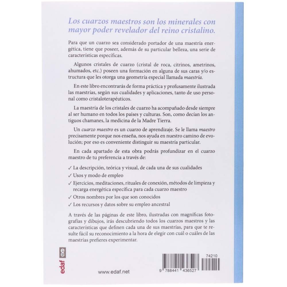 In questo libro troverai, in modo pratico e ampiamente illustrato, le maestrie in base alle loro qualità e applicazioni, sia per uso personale che cristalloterapeutico.