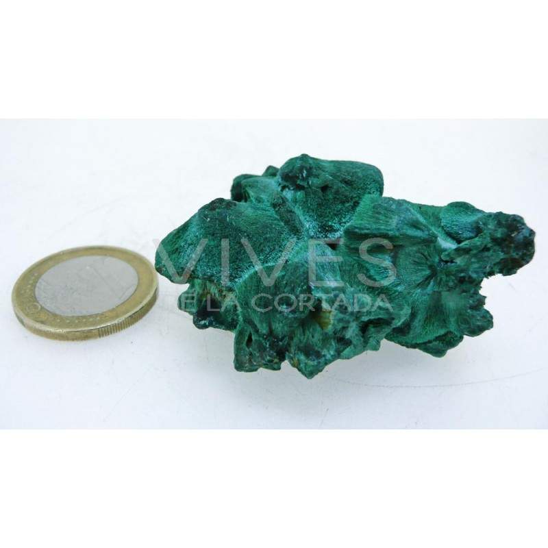 La malaquita è un minerale secondario del rame. Può presentarsi in diversi abiti e quando viene lucidata si possono apprezzare le sue interessanti venature e disegni. Appartiene al gruppo dei carbonati, e la sua durezza è di 3,5-4 sulla scala di Mohs.