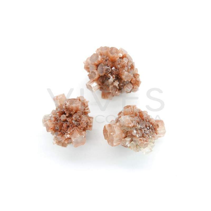 L'aragonite è un carbonato di calcio molto simile alla calcite per la sua composizione chimica, anche se presentano forme di cristallizzazione diverse. Il pezzo grezzo di aragonite presenta cristalli prismati pseudo esagonali semitrasparenti. Fa parte dei carbonati e ha una durezza di 3,5-4 sulla scala di Mohs.