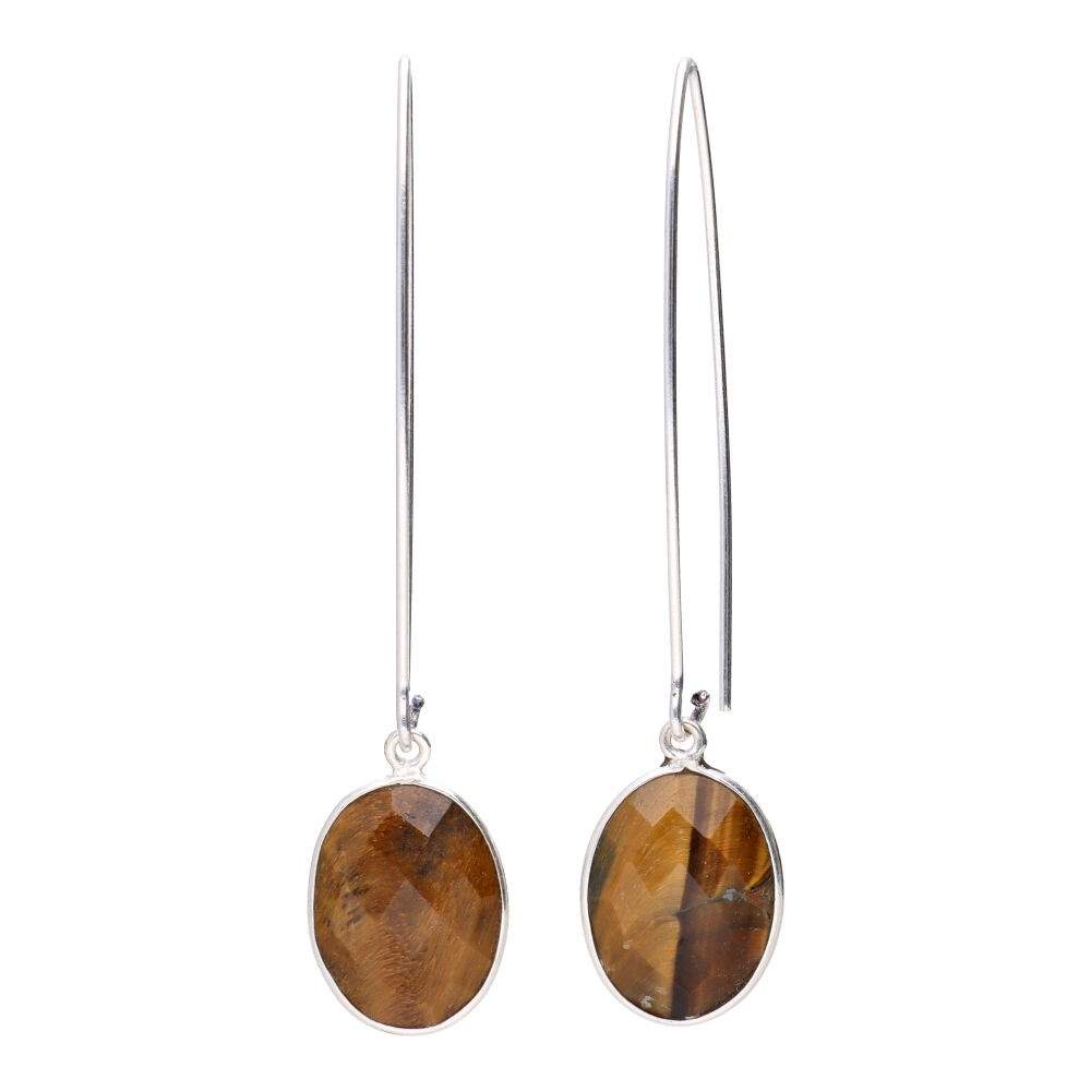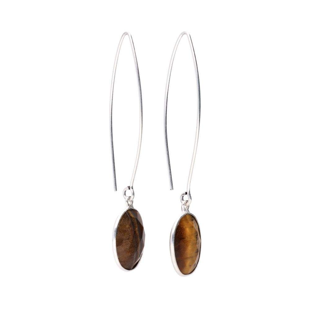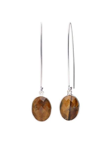 Orecchini Occhio di Tigre Ovali con Placcatura in Argento -P46-