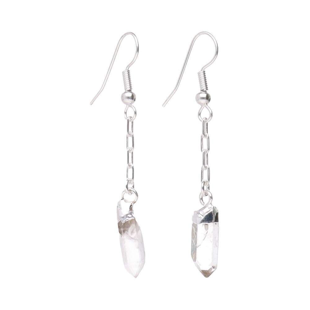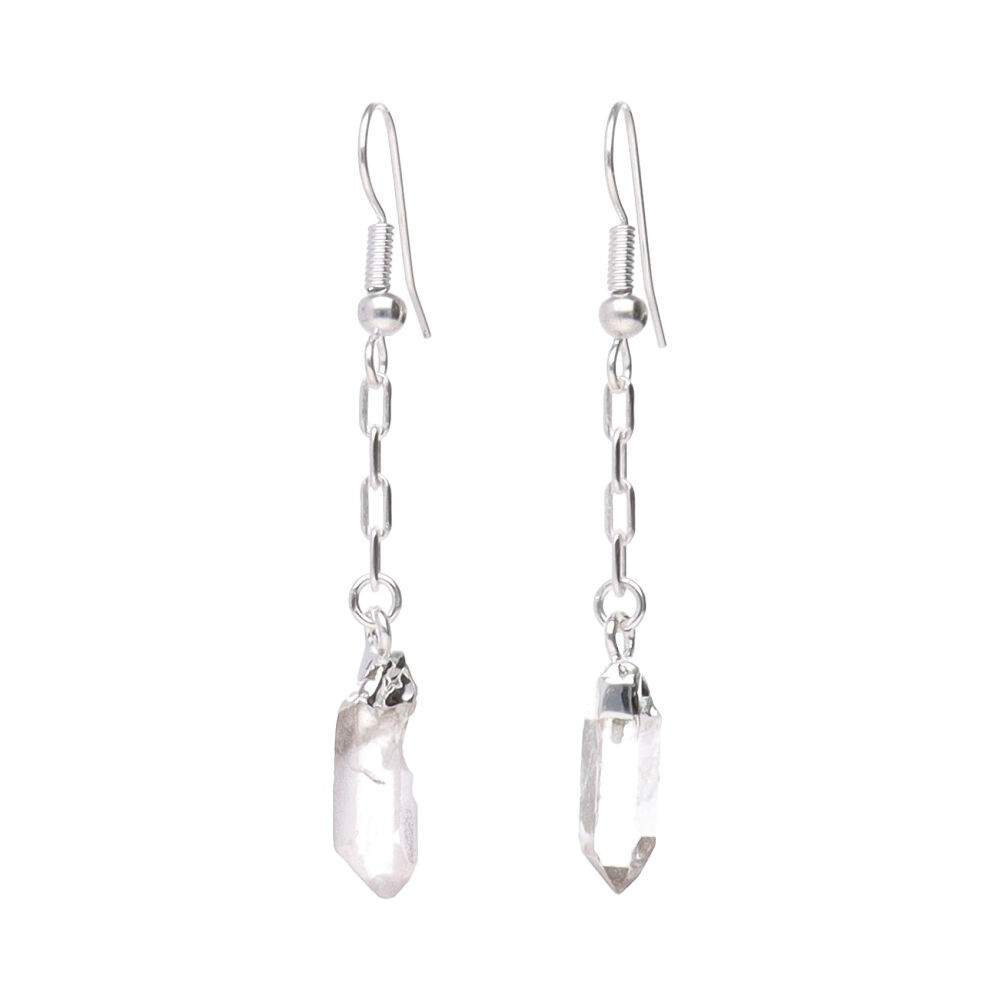 Orecchini con punta di quarzo e catena placcata in argento.