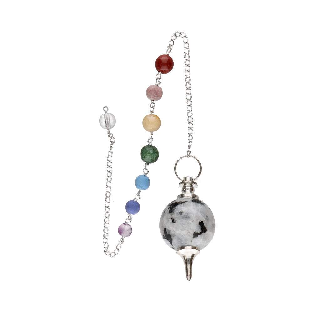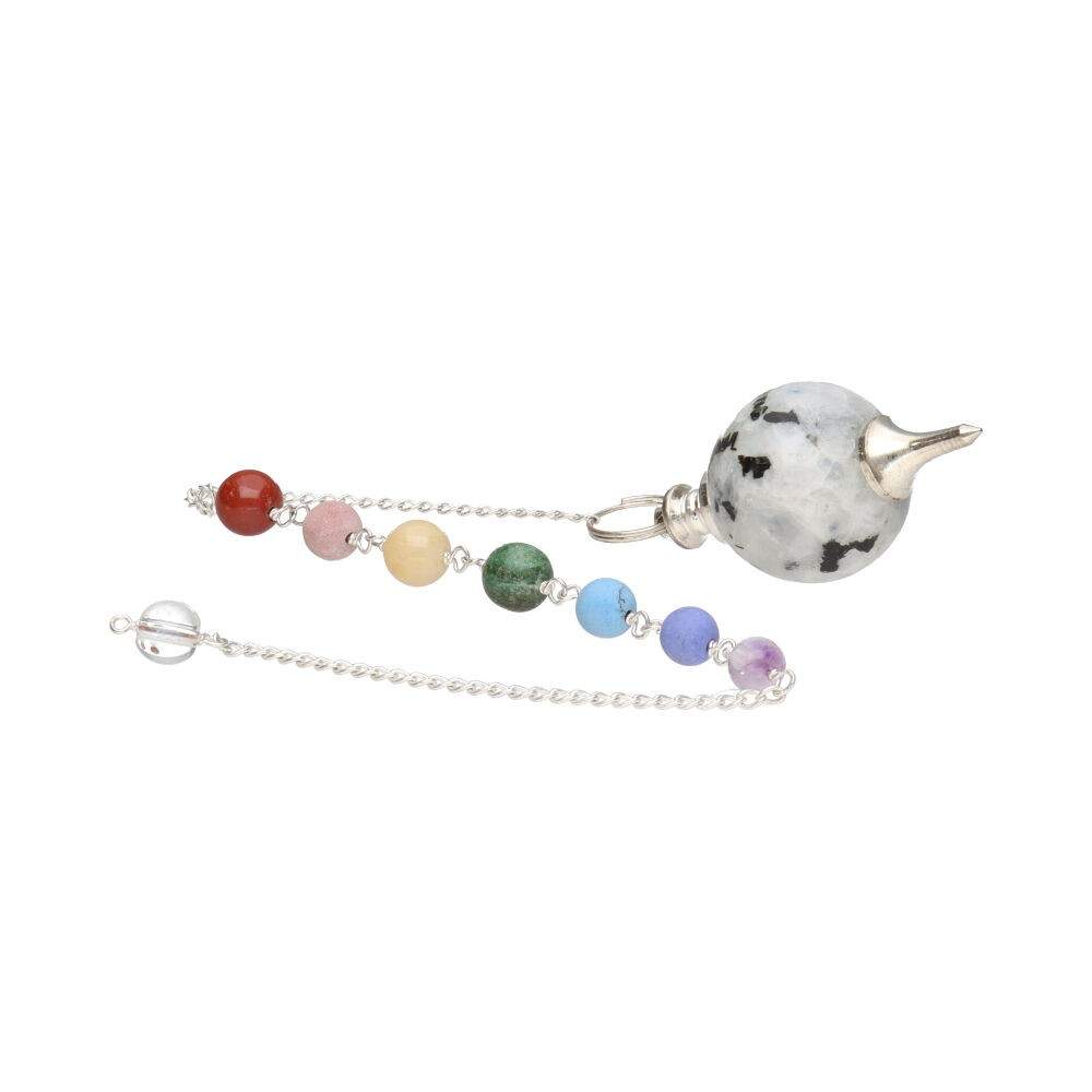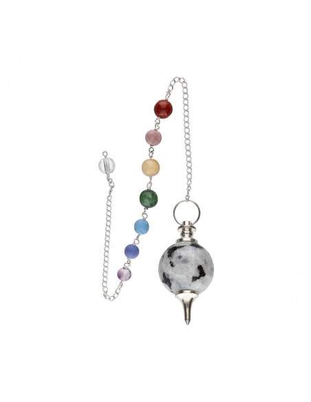 Pendolo Mermet con Pietra Luna e Chakra in Bagno d'Argento (PEND113)