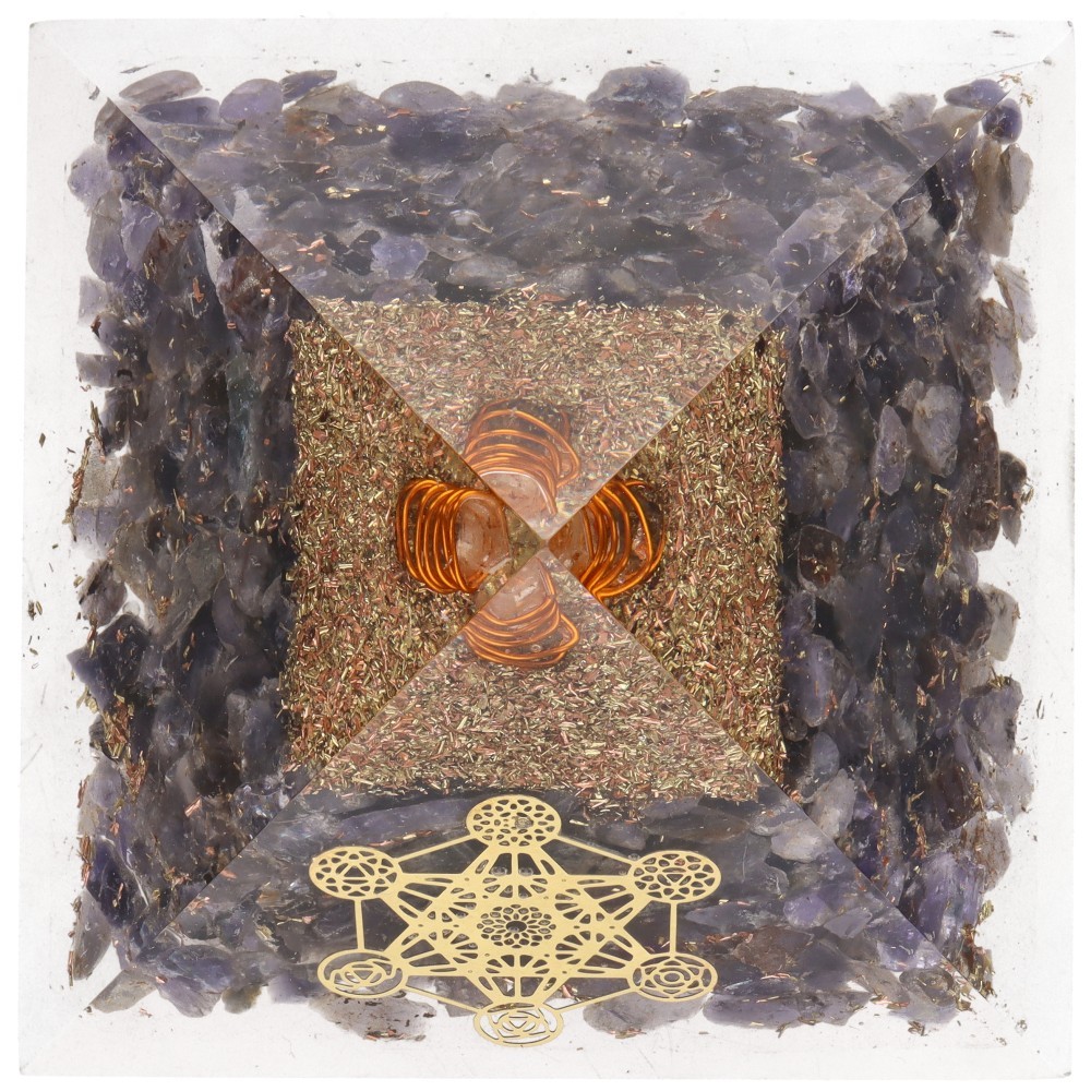 Piramide Orgonita di Iolite in resina con Metatrone 7x7cm