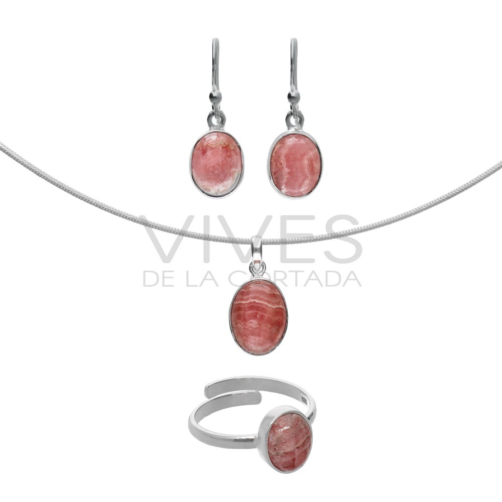 Set di orecchini e collana ovale in rodocrosite in argento sterling 925